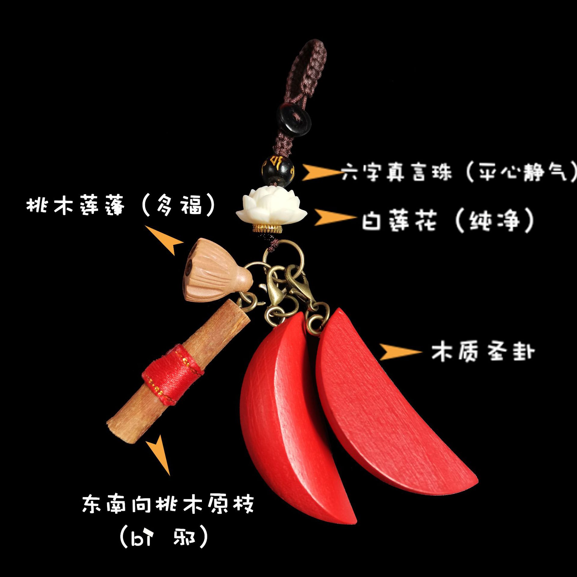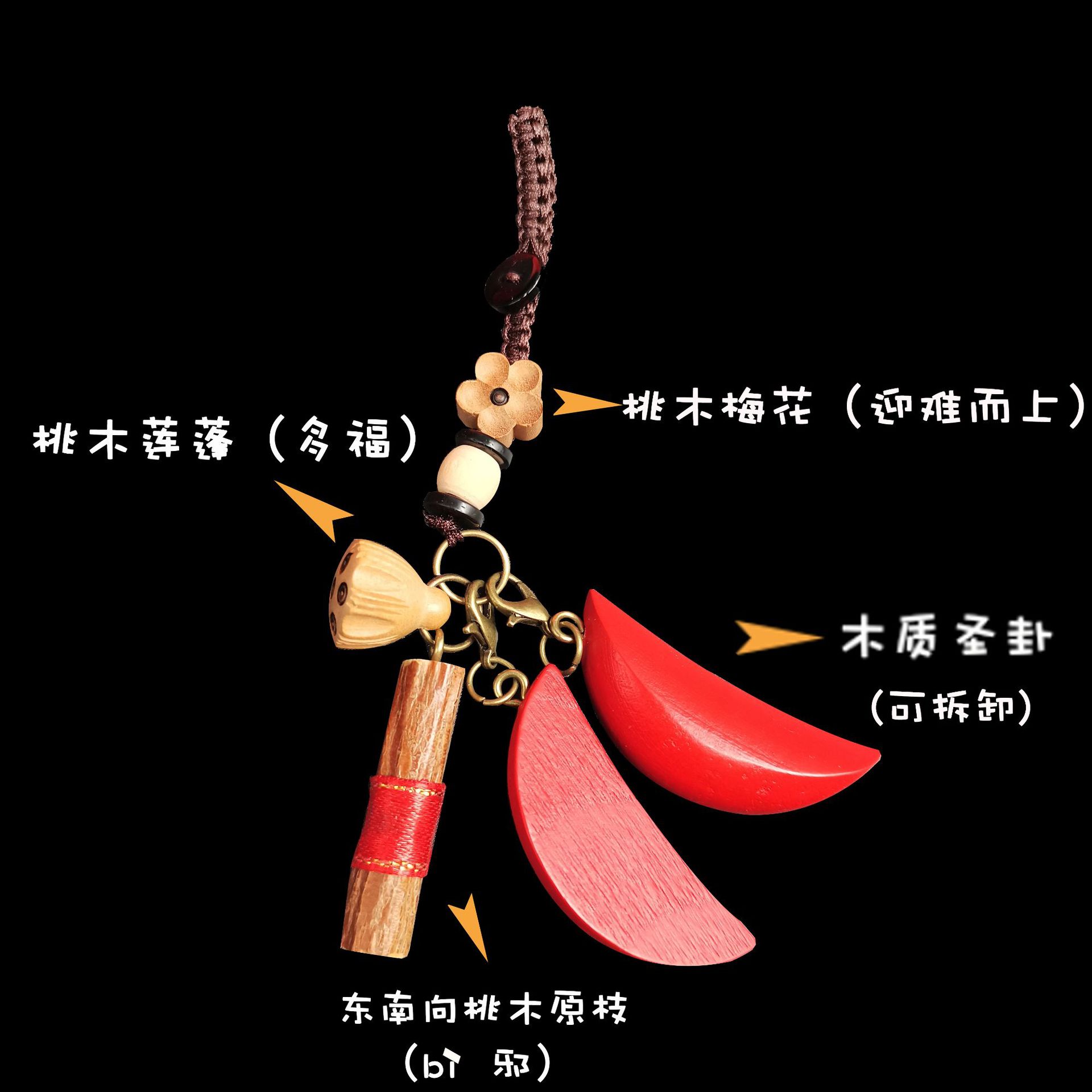 台湾聖杯阴阳杯汽车挂件车载后视镜挂饰木雕刻茭杯包包隨身掛件