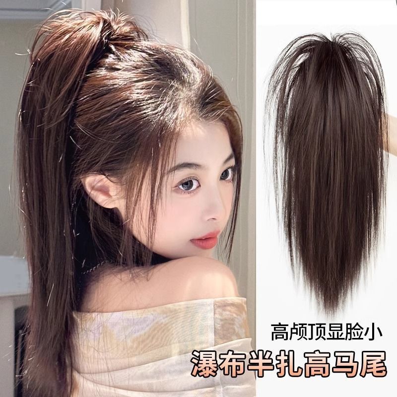 假发瀑布直抓夹马尾半扎高马尾喷泉自然高颅顶鸡窝头辣妹仿真假发
