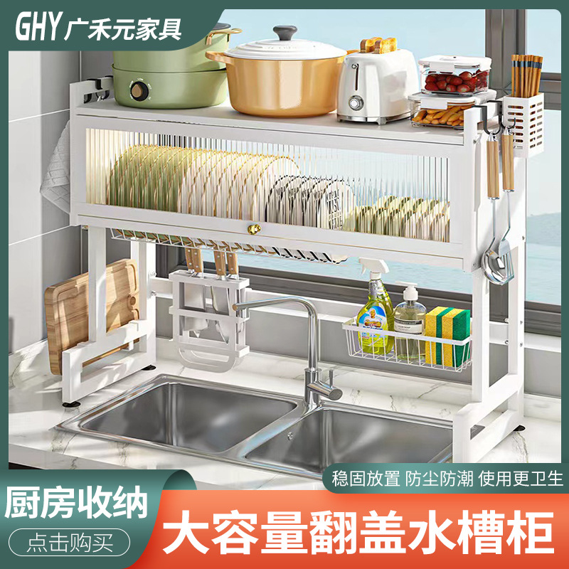 台所の水槽の棚の多機能の池の食器棚の現物の卸売りは食器棚の水切り棚を収納します。