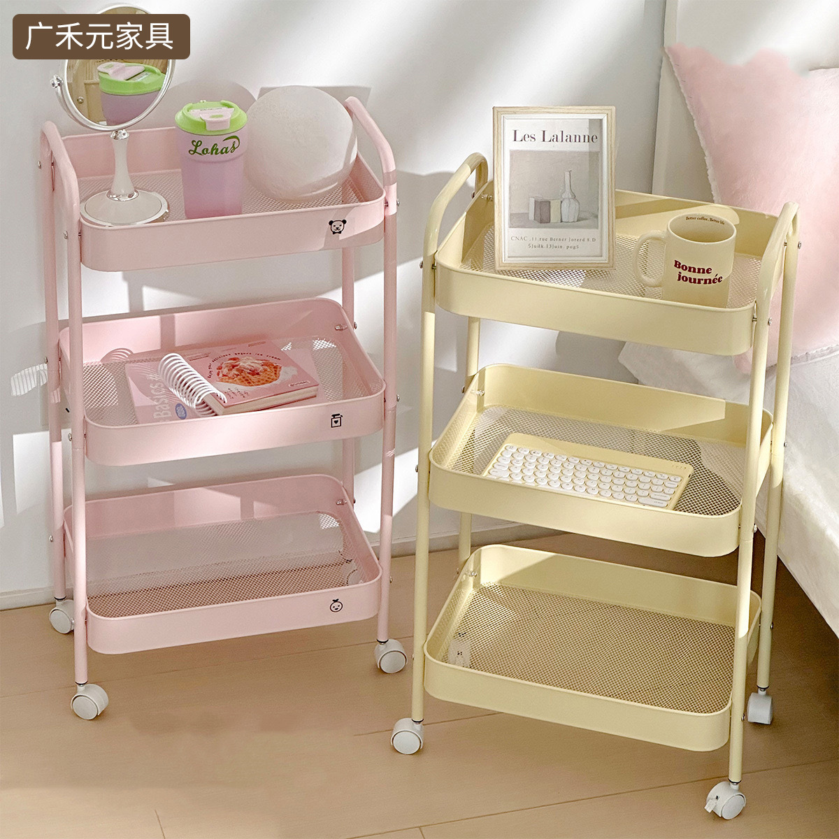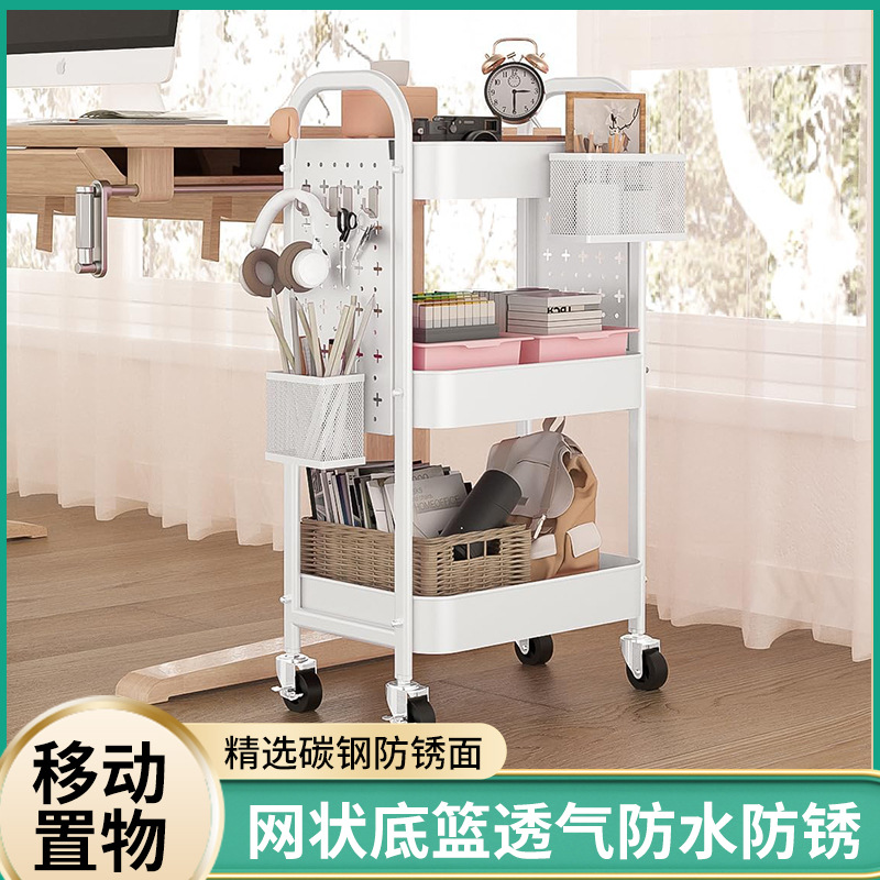 奶油风落地可移动小推车置物多层收纳架零食玩具化妆品整理储物架