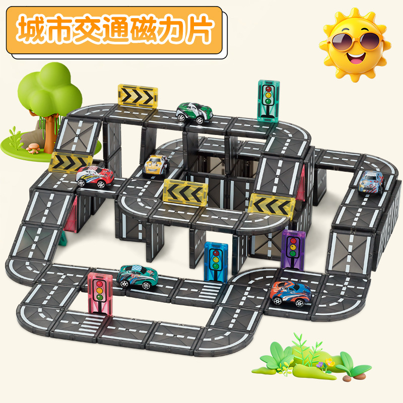 跨境彩窗磁力片城市交通道路强磁轨道拼装磁性积木儿童益智玩具