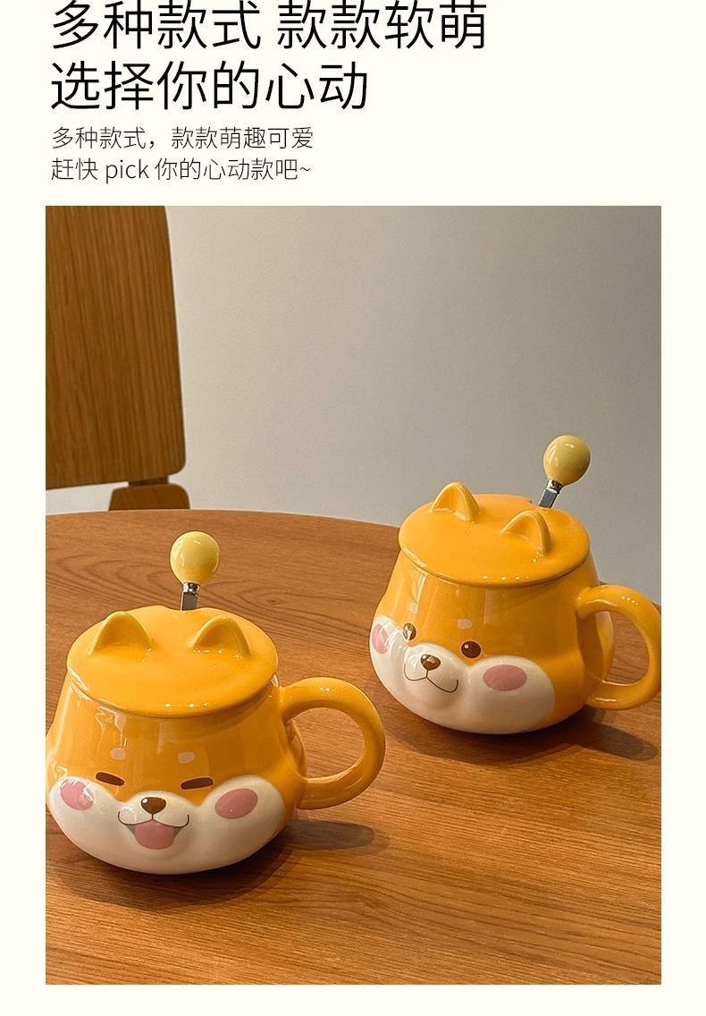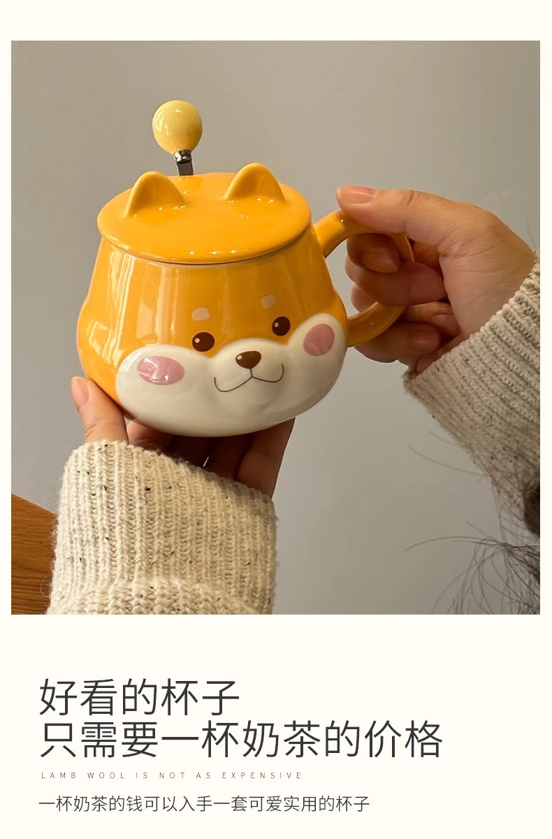 マグカップ女性かわいいクリエイティブ柴犬蓋付きスプーンオフィス家庭用高颜値コーヒーミルクセラミックカップ