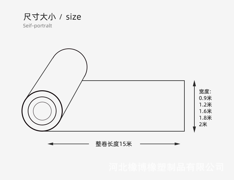 サイズ 0.9m 幅* 15m 長さ,1m 幅* 15m 長さ,1.2m 幅* 15m 長さ,1.6m 幅* 15m 長さ,1.8m 幅* 15m 長さ,2m 幅* 15m 長さ