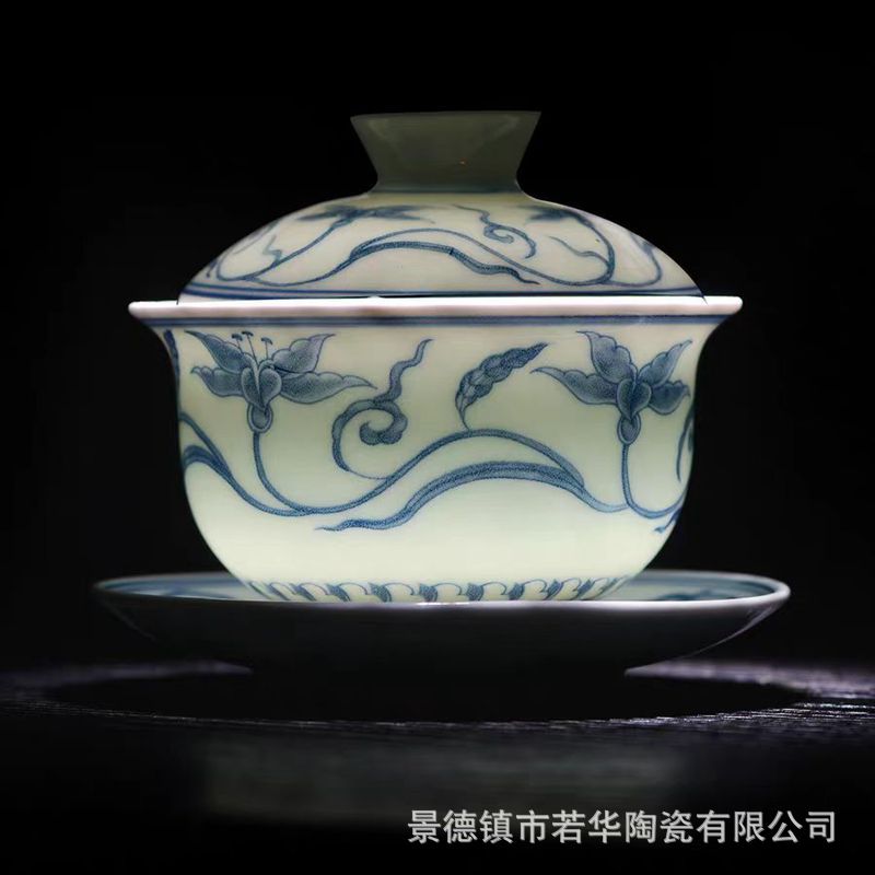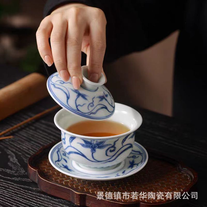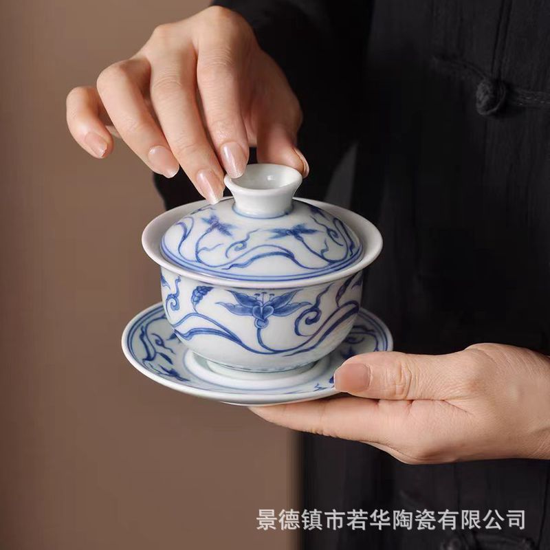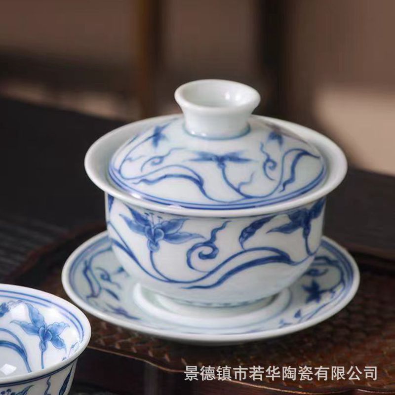 陶磁器セット三才蓋碗老陶泥レトロカンフー茶器茶碗釉薬下虎杯景徳鎮