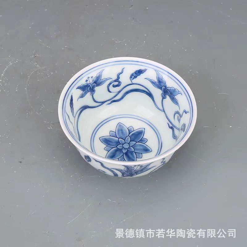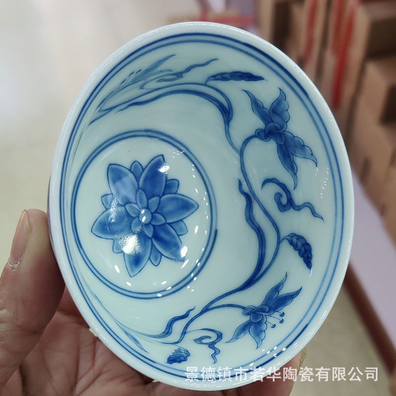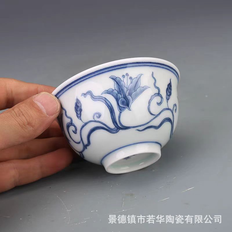 青と白の花を卸売りして、釉薬をかけて、主人の杯の茶器を飾って、古景徳鎮の陶磁器の工夫の個人の杯の湯飲みをまねます。