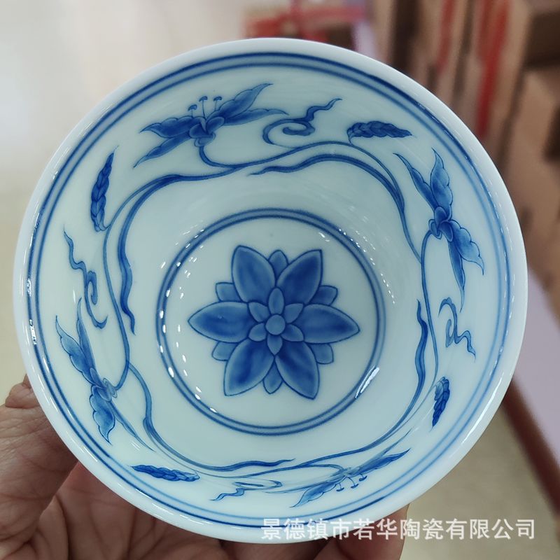 景徳鎮のレトロな青花磁器のお茶の杯の陶磁器の工夫の小さいサイズのお茶の杯の1杯の茶碗の品の茗杯の主人の杯の50ml
