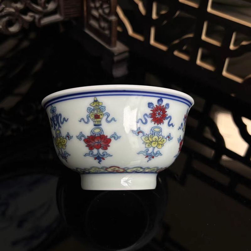 景徳鎮陶磁器エナメル彩寿桃五福主人杯茶杯品茗杯薄胎品茗杯家庭用茶杯
