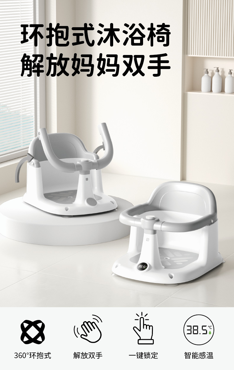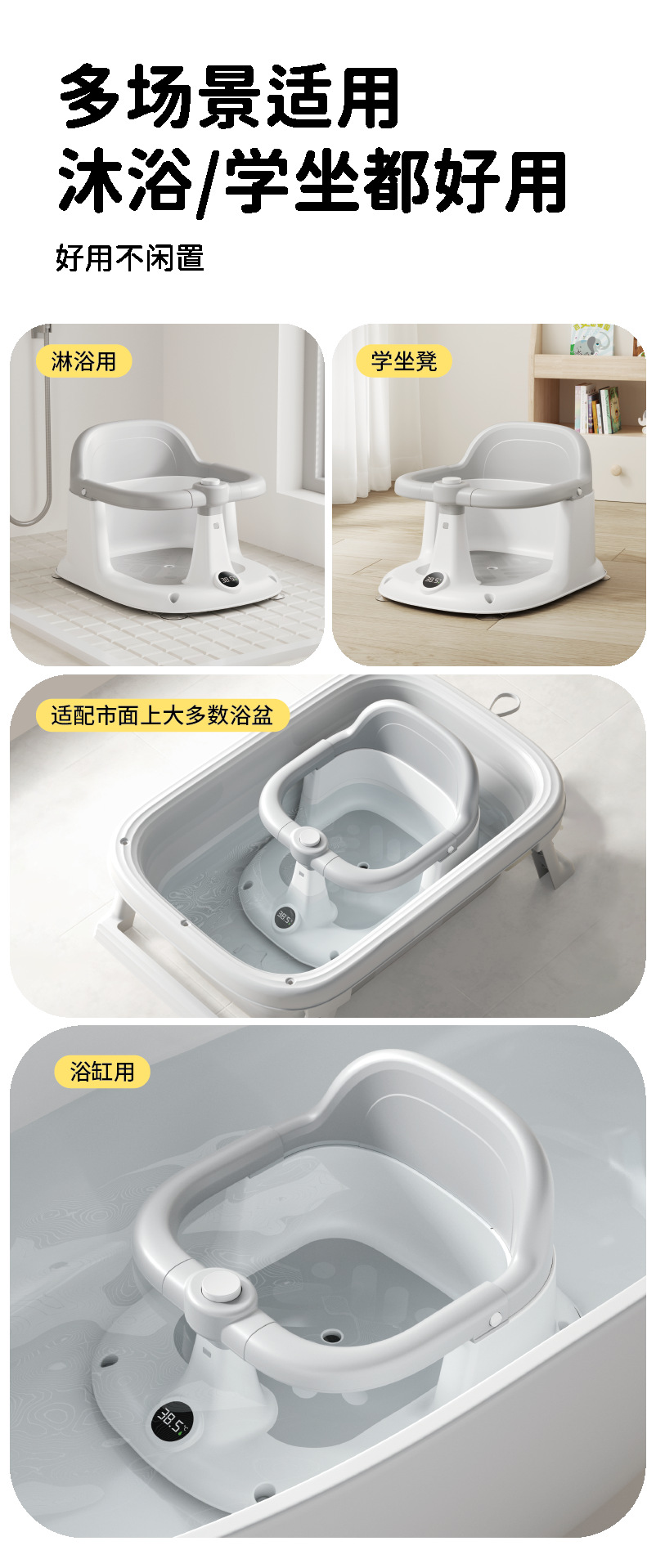 国境を越えたベビーバスチェア、幼児用浴槽、リクライニングバススツール、子供用滑り止めバスシート、デジタル温度表示付き