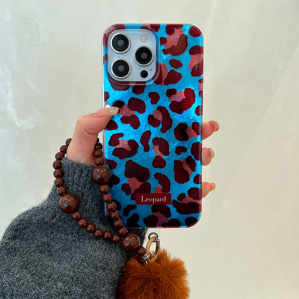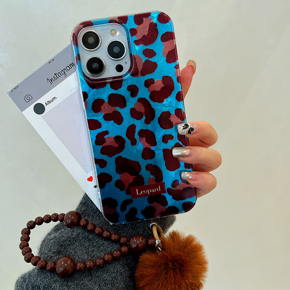 クリエイティブ韓国スタイルのストラップブルーブラウンヒョウ柄渦巻き 14 Apple 16pro 携帯電話ケース新しい iphone15PRO に適しています