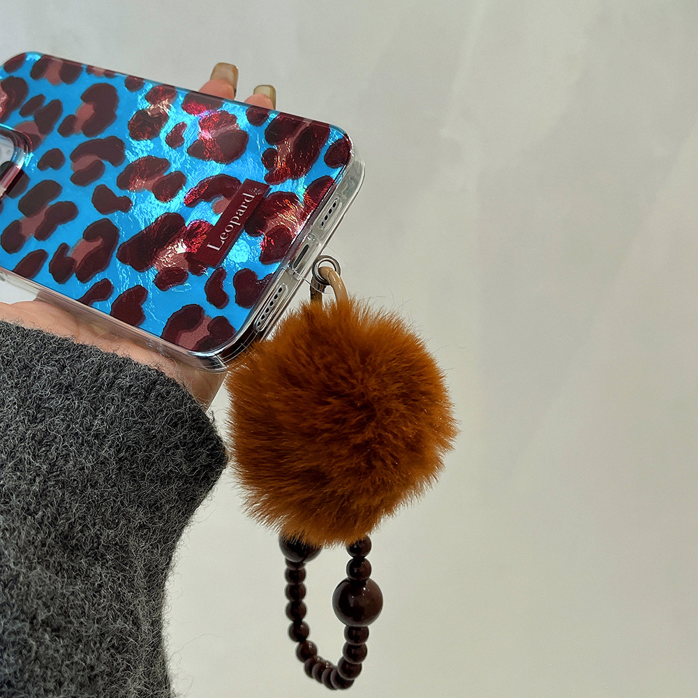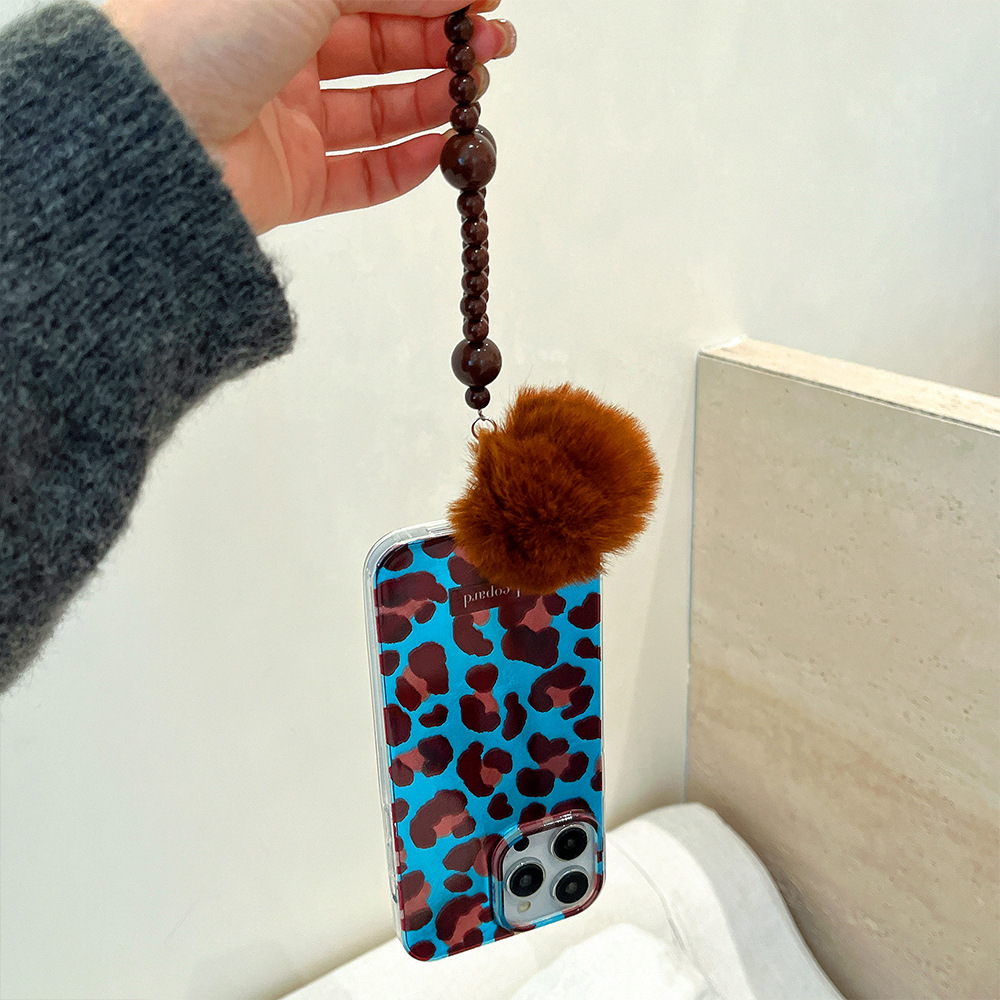 青と茶色のヒョウ柄(シングルシェル),青と茶色のヒョウ柄(シングルシェル)+ビーズ茶色のファーボール