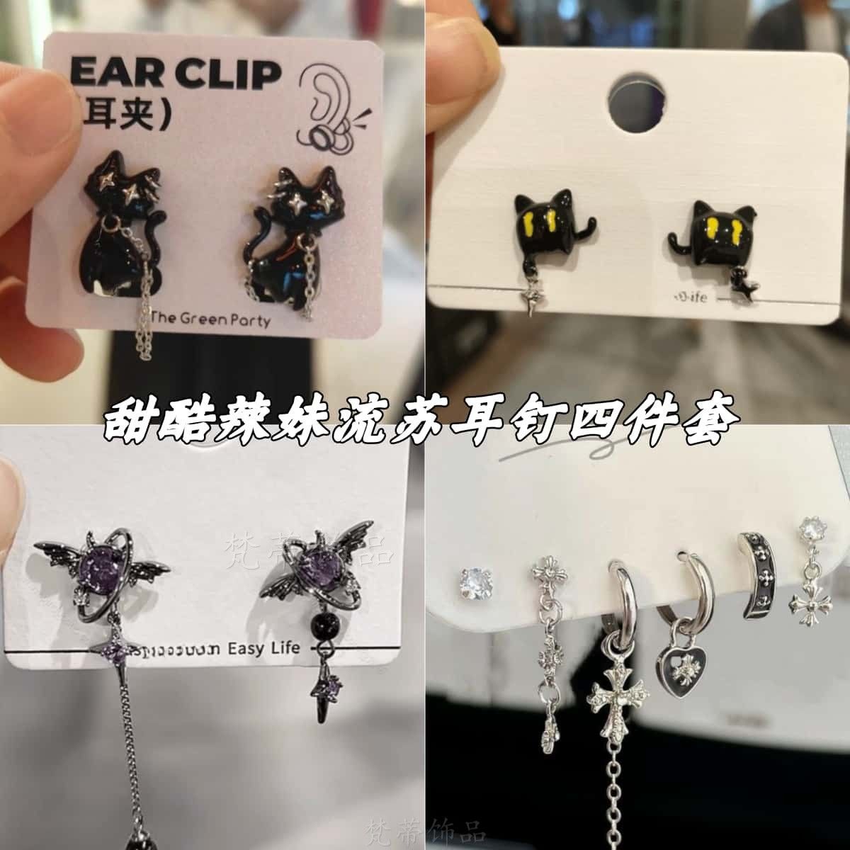 黑猫耳钉耳夹可爱精致甜美少女心链条流苏设计个性百搭女友闺蜜礼