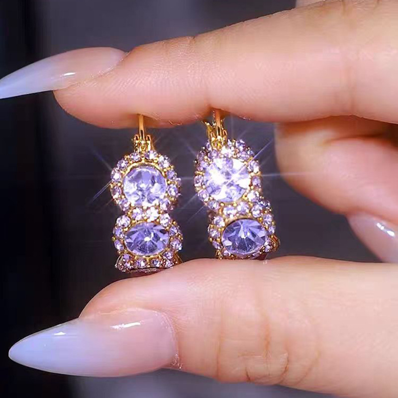 軽豪華超閃紫満ドリルジルコン耳輪耳掛け女性大衆デザイン感洗練されたイヤリング気質耳飾り