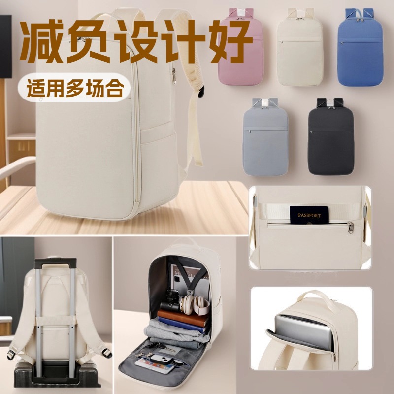 跨境多功能双肩书包新款简约纯色大容量商务电脑包出差通勤旅行包