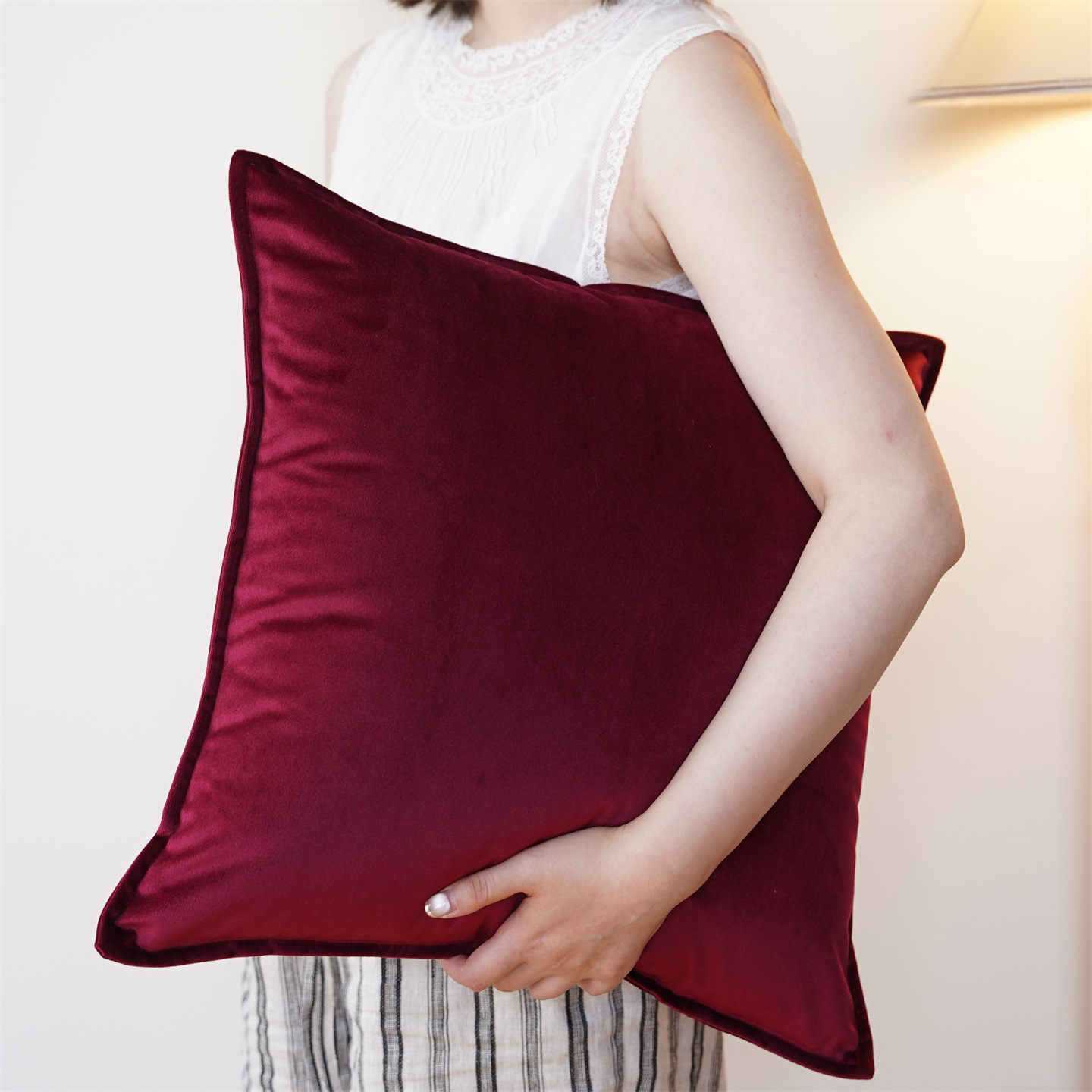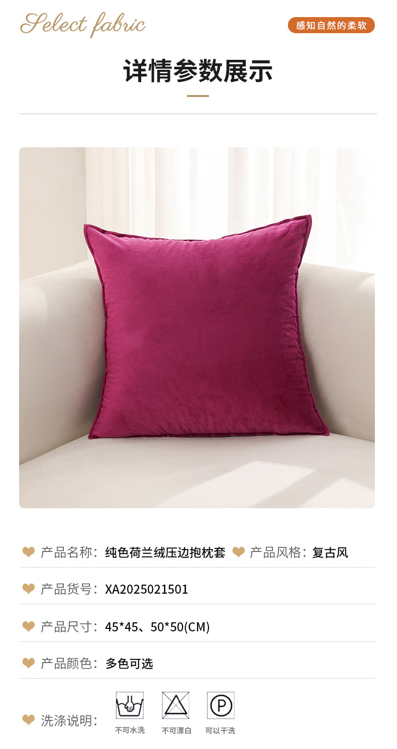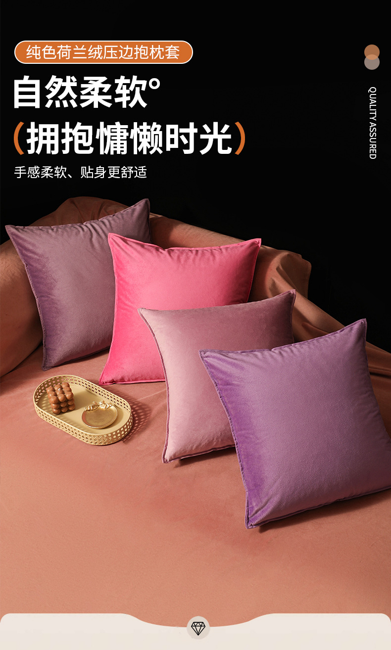 跨境 抱枕正方形枕套现代天鹅绒轻奢美式粉色墨绿墨绿酒红色靠枕
