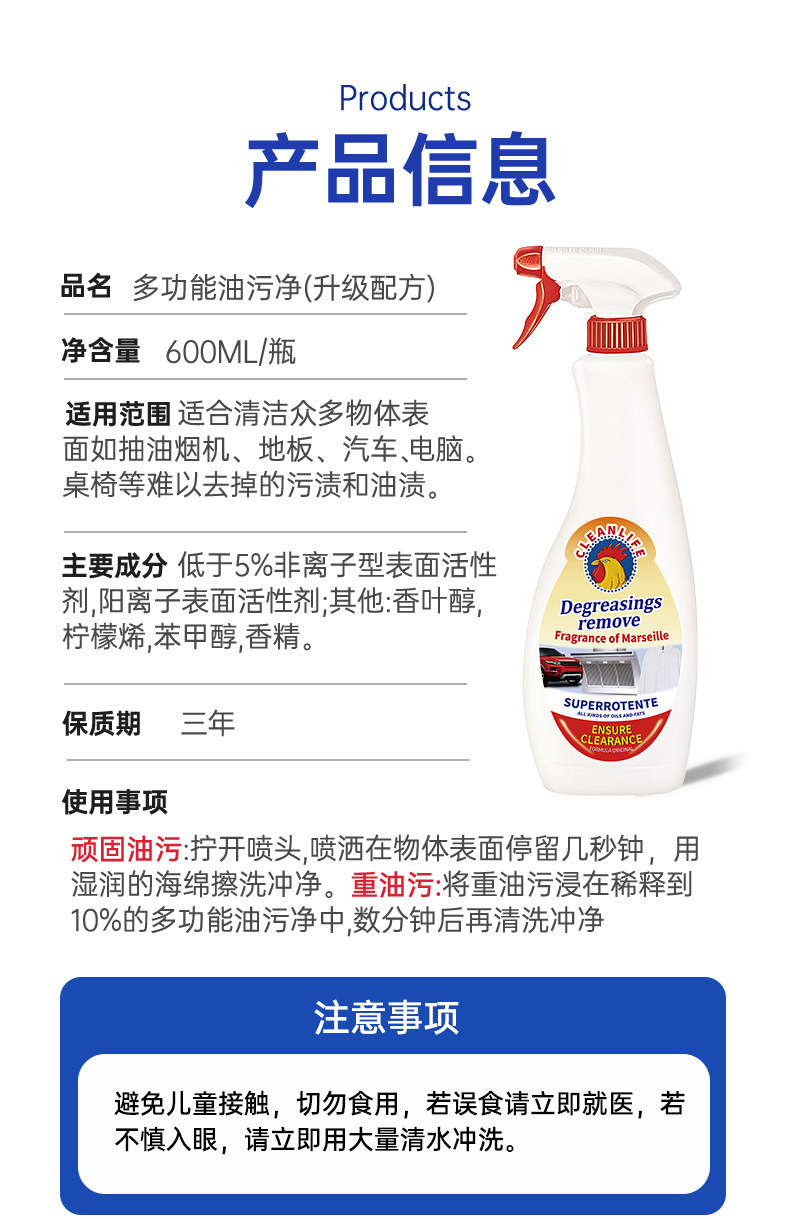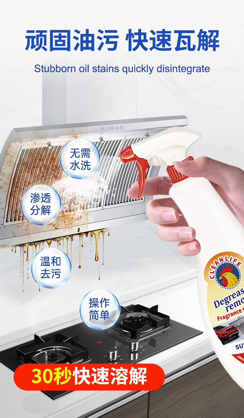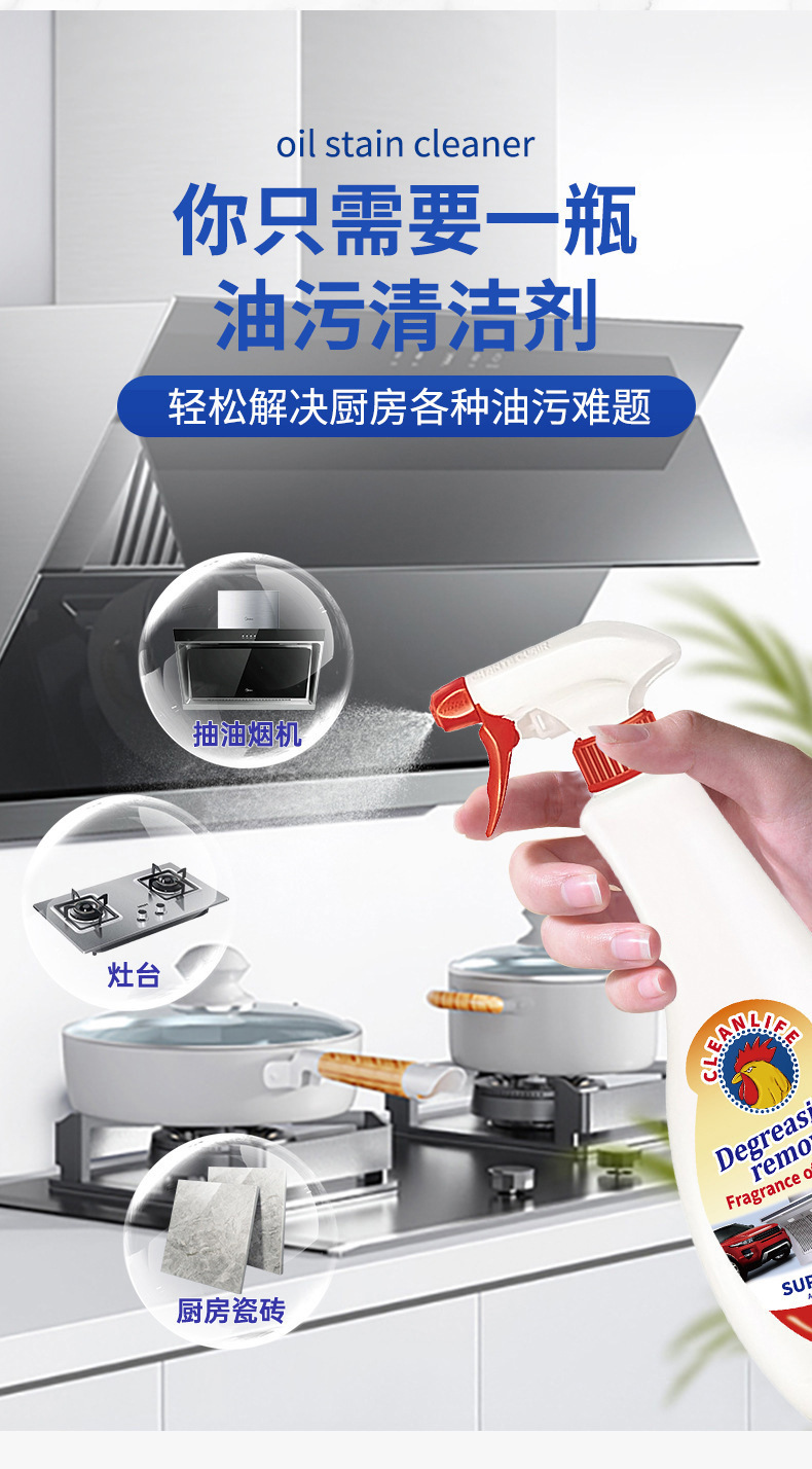 大公鸡鸡头水头强力去污清洁剂喷雾喷泡沫厨房油污油烟机灶台清洁
