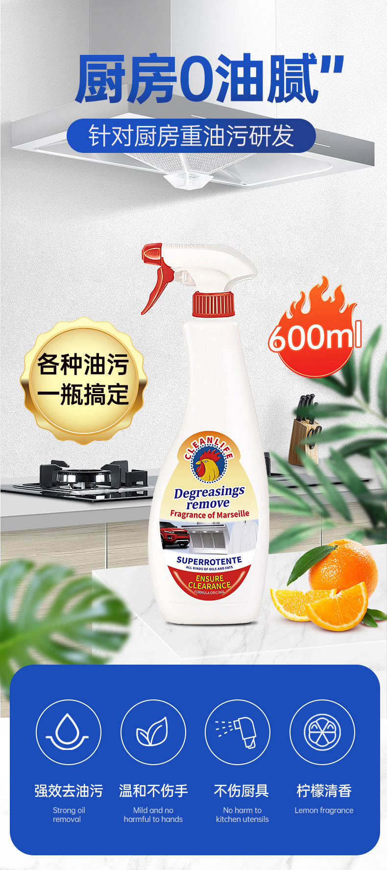 油汚れ洗浄キッチン輸入処方雄鶏キッチン油汚れ克星強力汚れ除去洗浄洗剤