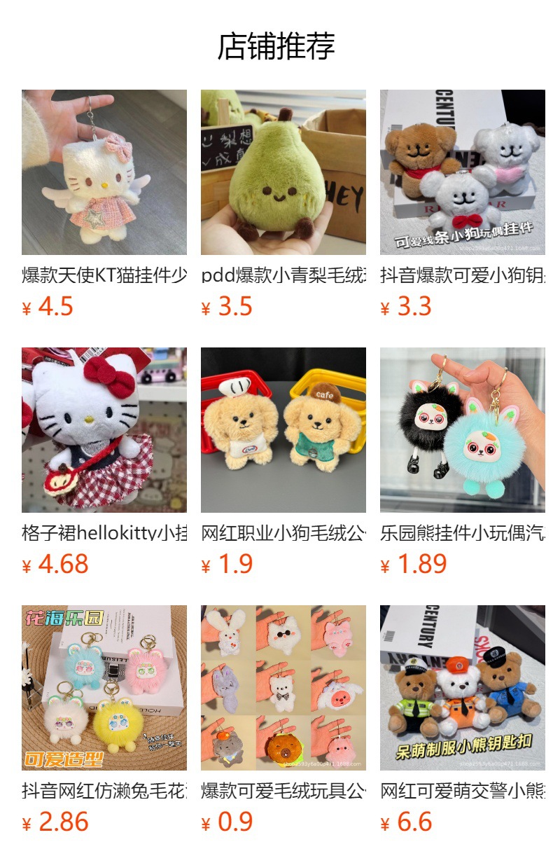 小礼品夜市地摊公仔毛绒挂件包包钥匙扣情侣小挂件吱吱叫玩偶批货