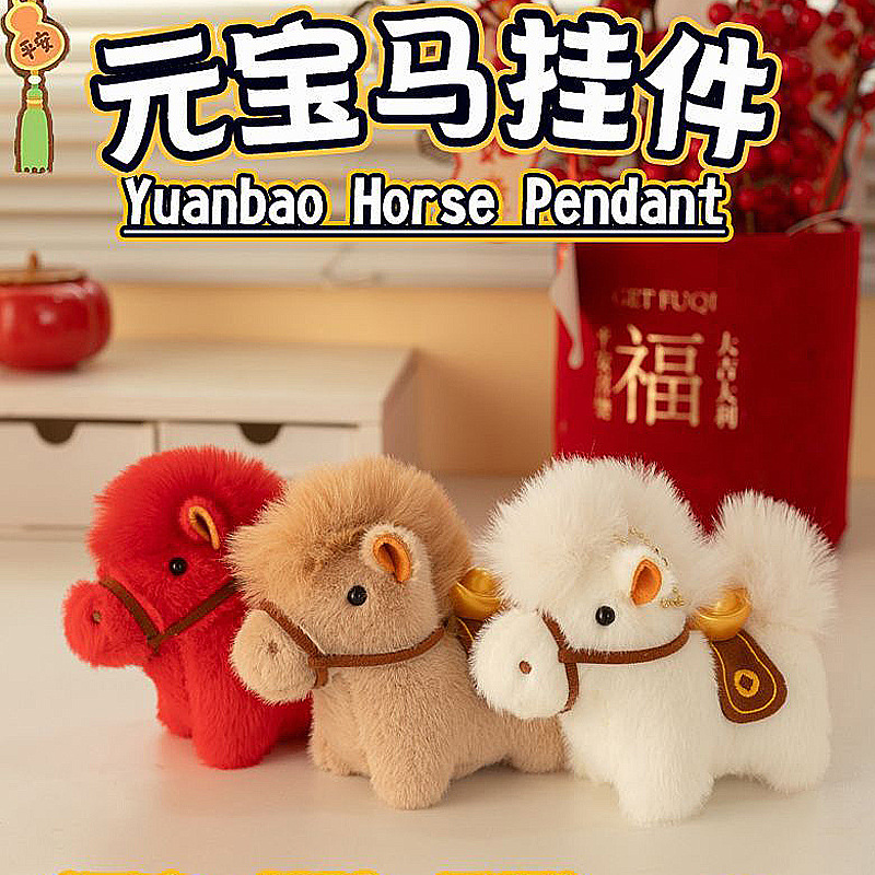 小玩偶挂件批货有挂扣元宝马年吉祥物毛绒玩具包包挂件高级感公仔