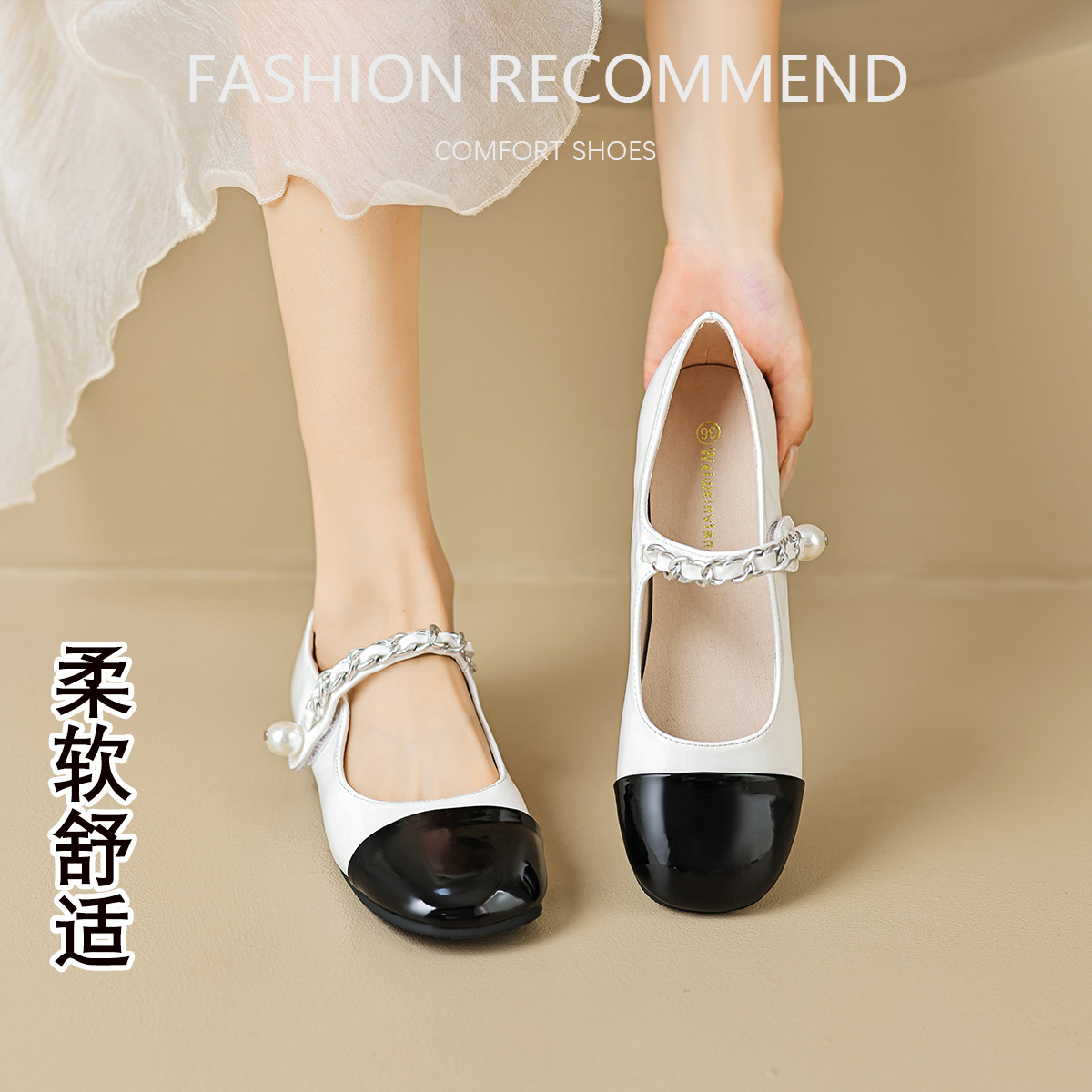 角頭フランス式メアリージェーン靴女軟底2025年春秋小香風一字帯浅口シングル靴女疲れない足