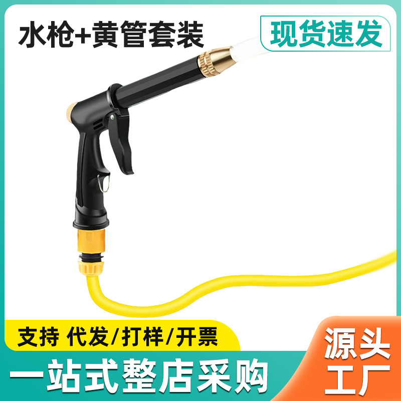 ロングロッド銃セット高圧家庭用洗車水鉄砲水管ホースガーデン伸縮清潔花スプレー
