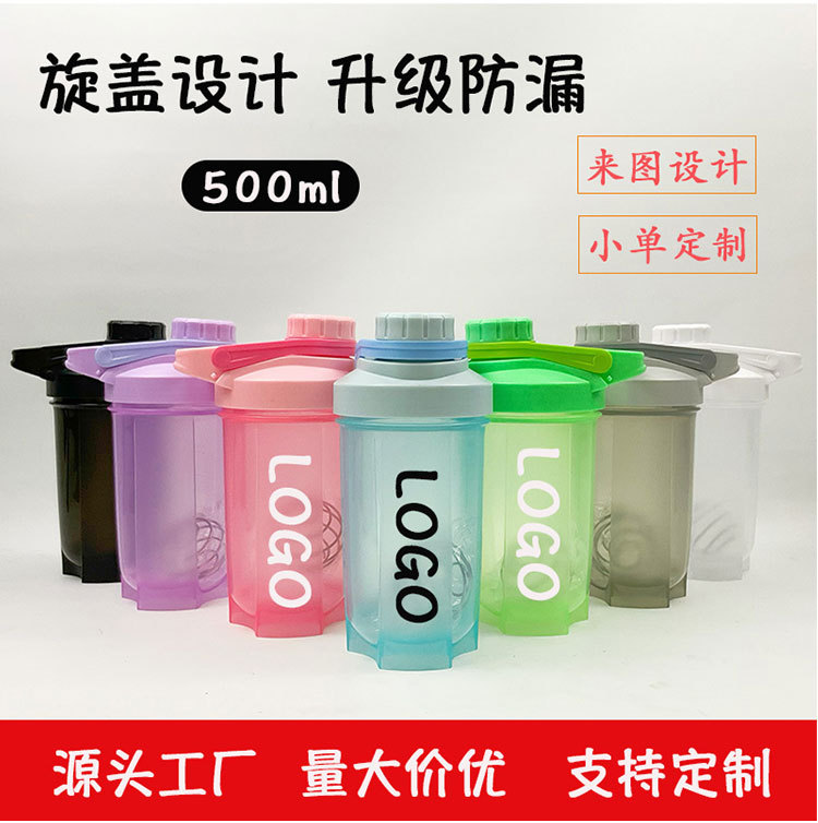 500 ミリリットルプラスチックシェイクプロテインパウダーカップミキシングカップフィットネススポーツポータブルハンドヘルドミルクシェイク広告プロモーション