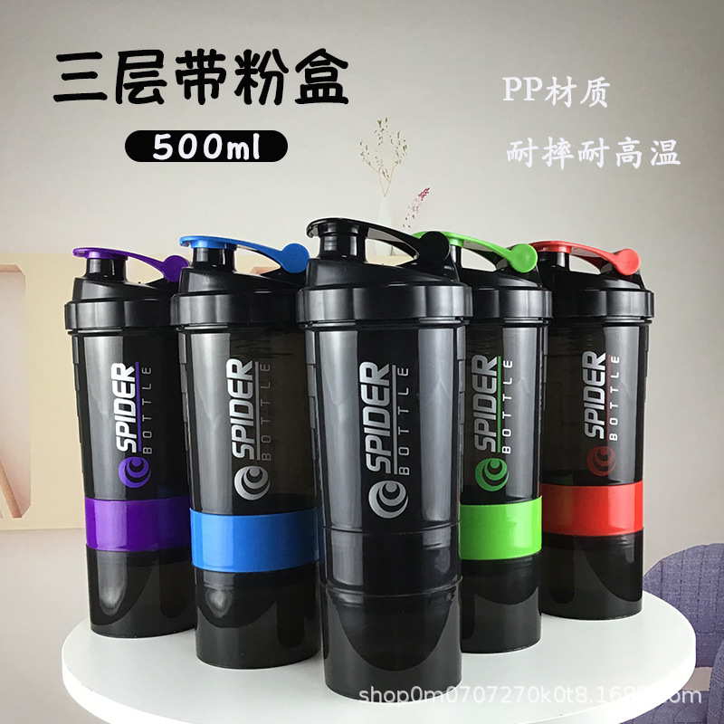 卸売りの粉の箱の薬の箱の新型のファッションのスプリングの3層のフィットネスの運動のコップのクモの杯の運動はコップの水筒を揺り動かします。