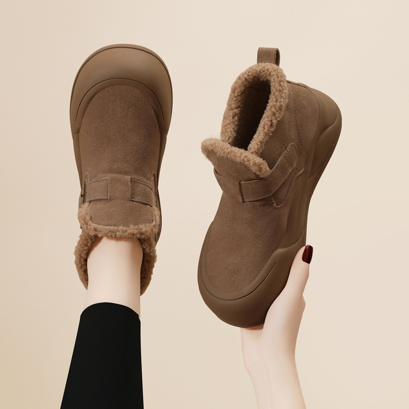 第一層牛革製の新しいファッショナブルなショート丈スノーブーツ、女性用裏起毛ショートブーツ、冬用滑り止めスリッポン暖かい綿靴
