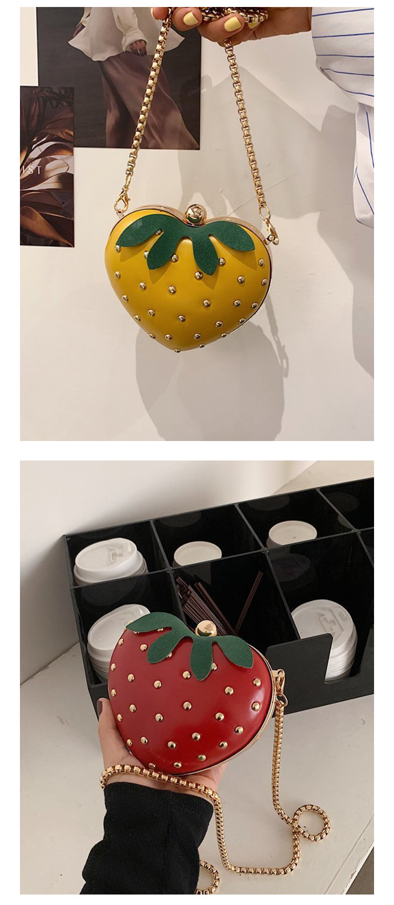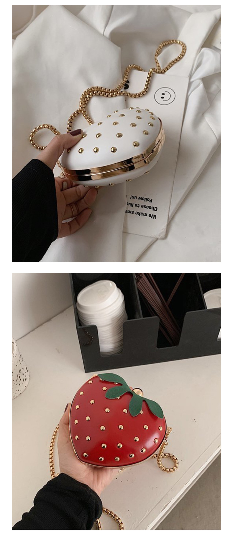 ネットで話題の小さなイチゴ型チェーンバッグ2025 可愛くておしゃれな斜め掛けバッグ 女の子向けins風ミニ財布