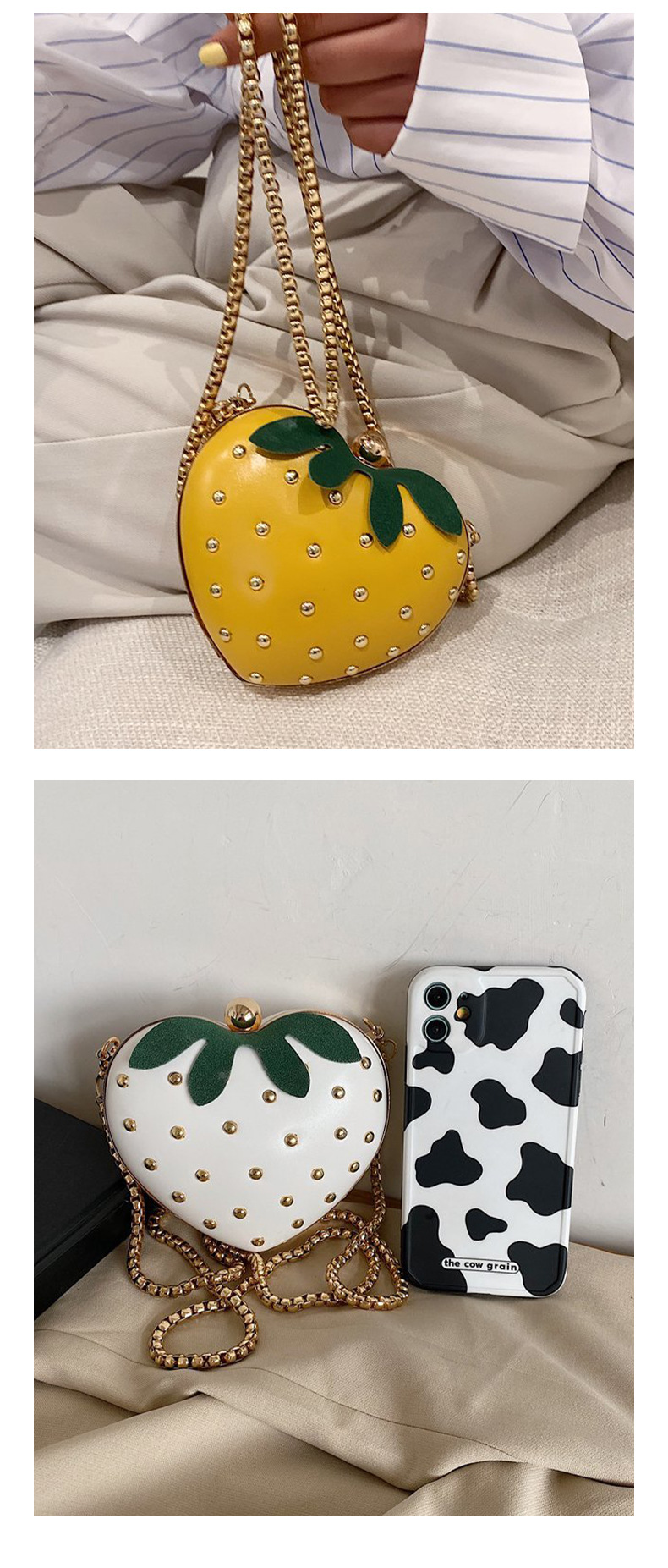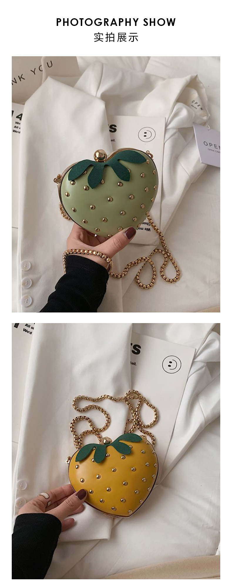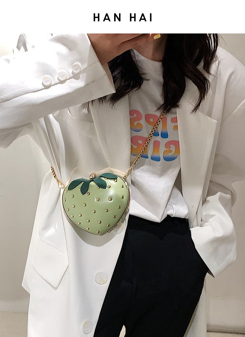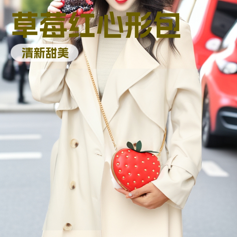 ネット赤小いちごハート型チェーンバッグ2025かわいい洋気斜め掛け少女insネット赤ミニ小銭入れ