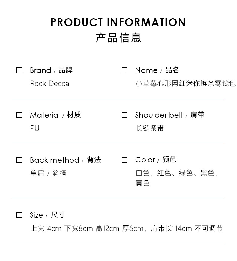 商品番号 小さなイチゴのハート型ネットセレブミニチェーン小銭入れ