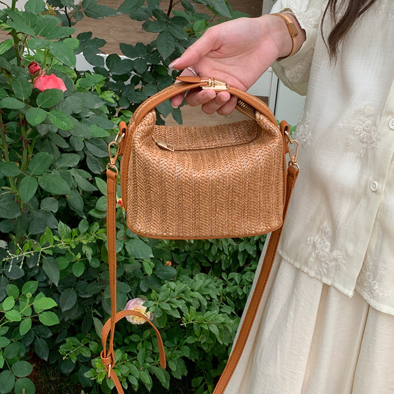 韓国の東大門イン草織り小さなバッグ 2025 夏の新しいカジュアルレディースバッグポータブルショルダーメッセンジャーバッグ