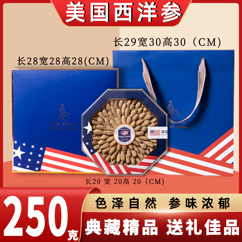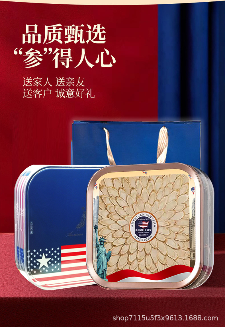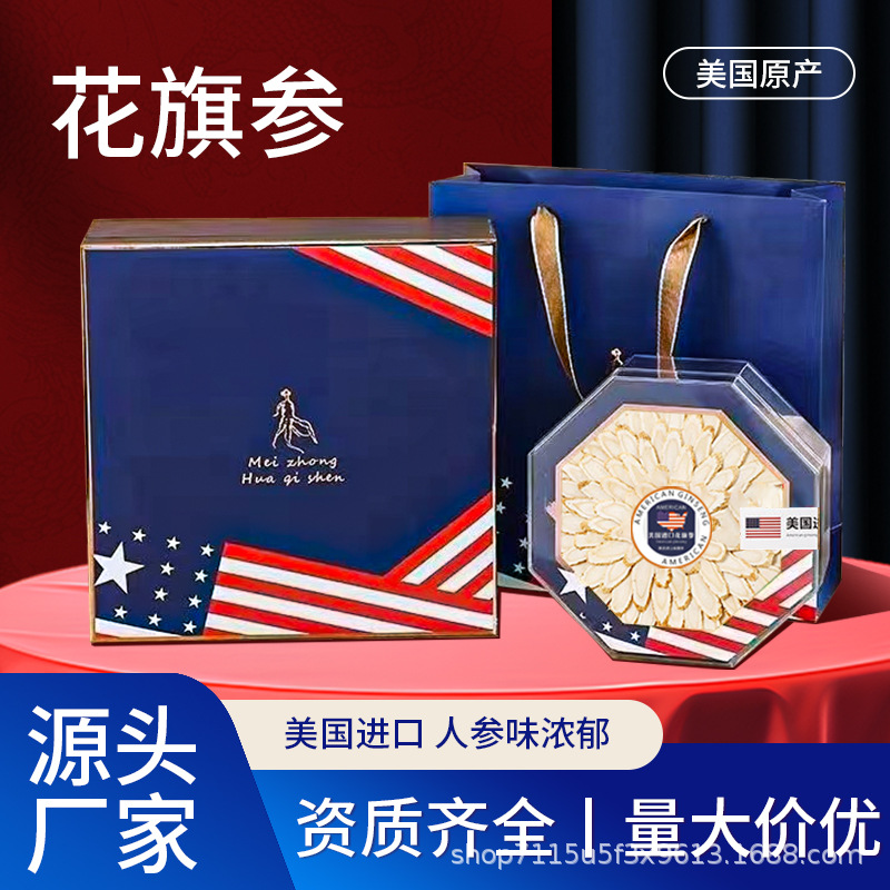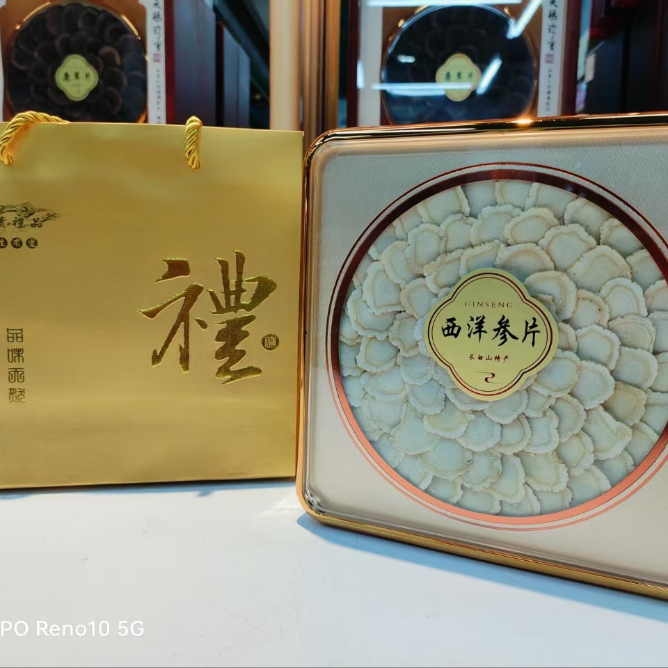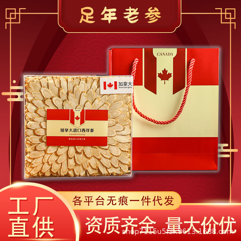 アメリカ西洋参礼箱入り西洋参片足齢軟支老花旗参切斜片贈答品票卸売り代発