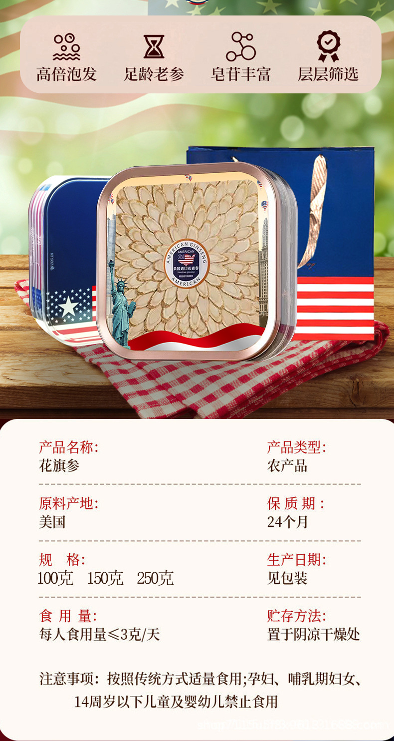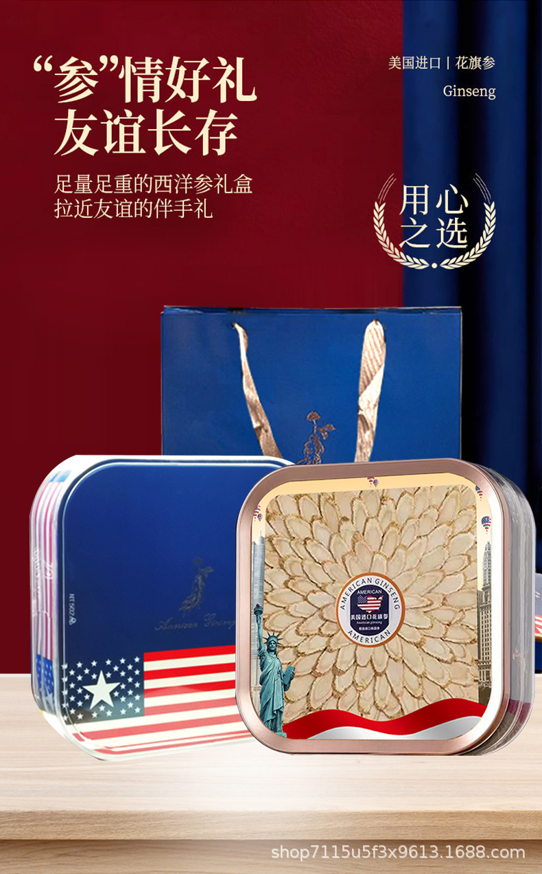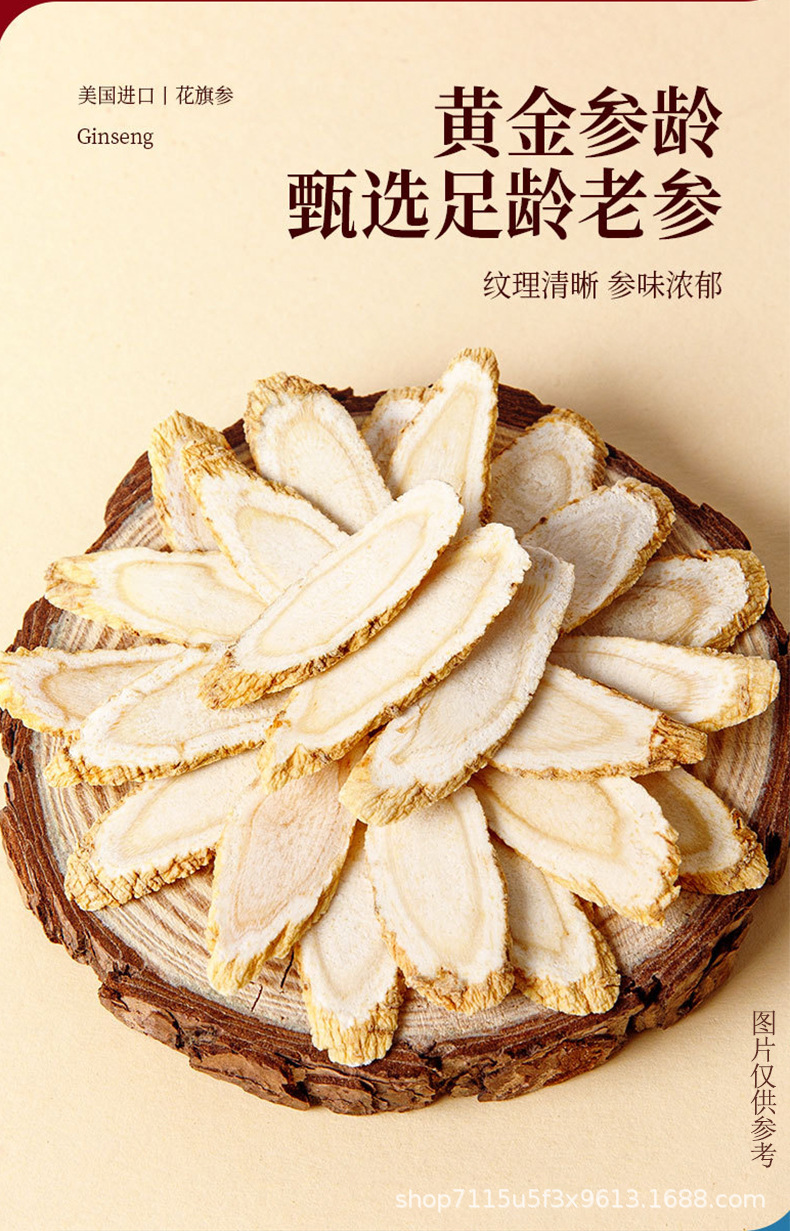 アメリカ西洋参礼箱入り西洋参片足齢軟支老花旗参切斜片贈答品票卸売り代発