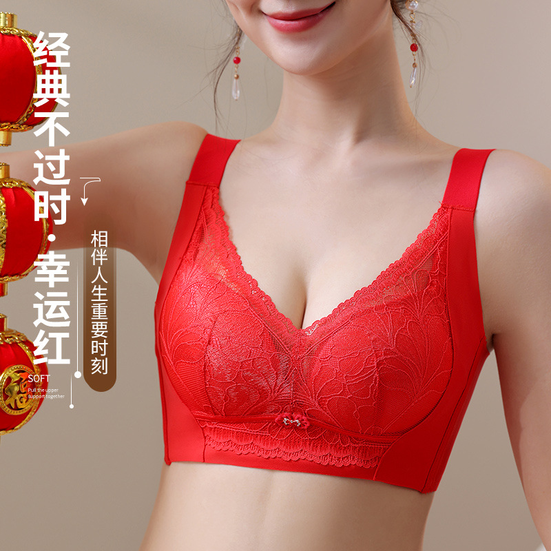 粉底液无痕内衣女软支撑舒适聚拢收副乳上托防下垂本命年红色文胸