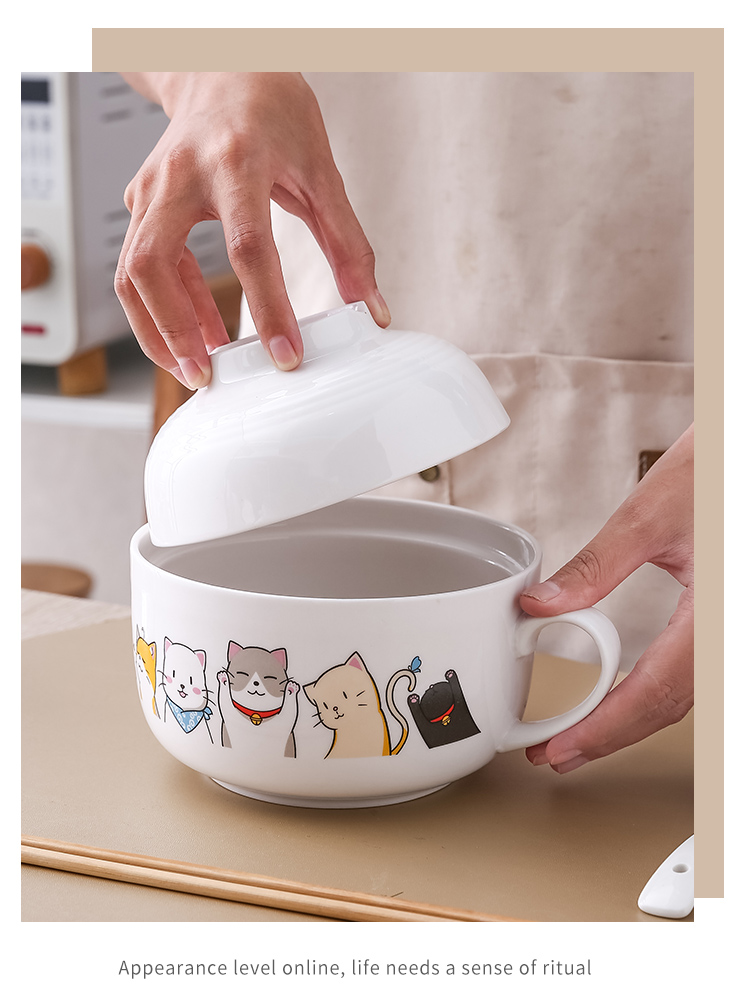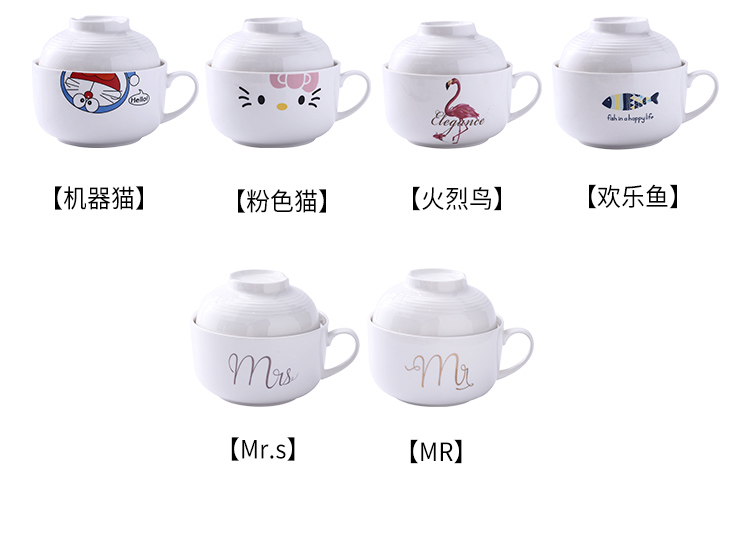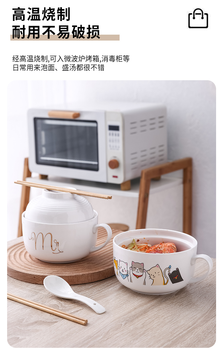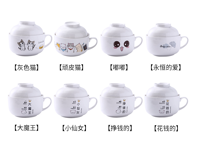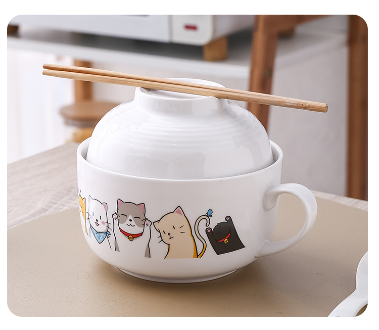 陶磁器の泡の碗は蓋の碗の学生の寮の単一の漫画のインスタントラーメンの碗の食器の食器の食器の箸のセットがあります。