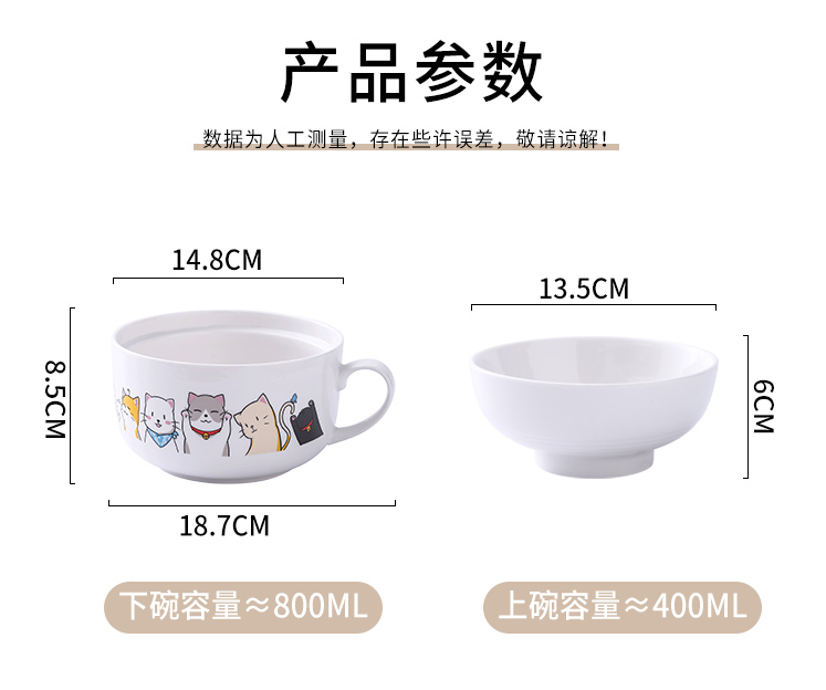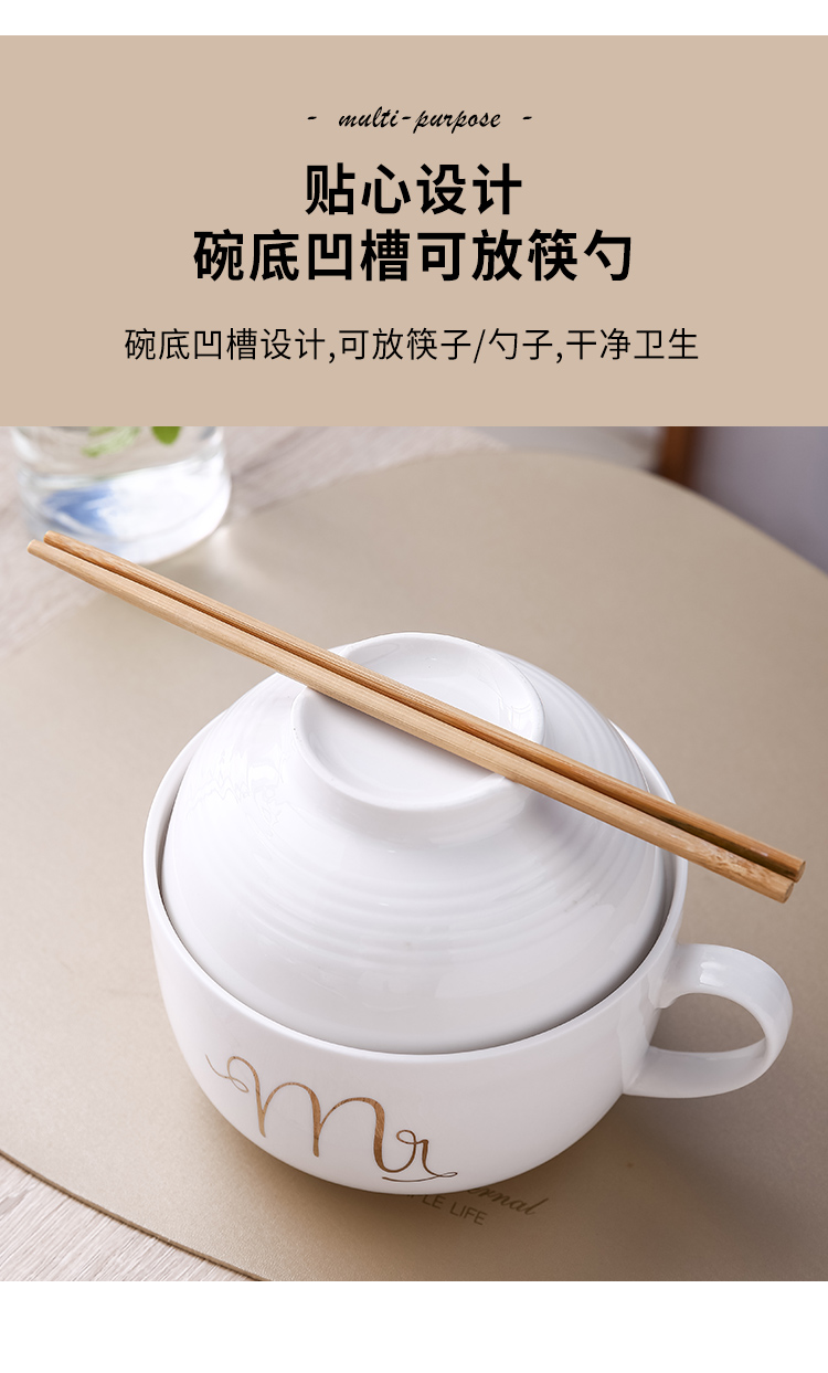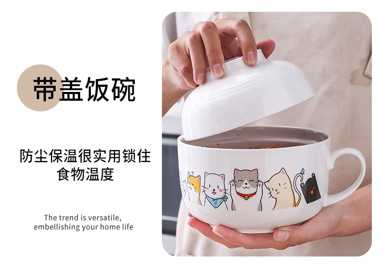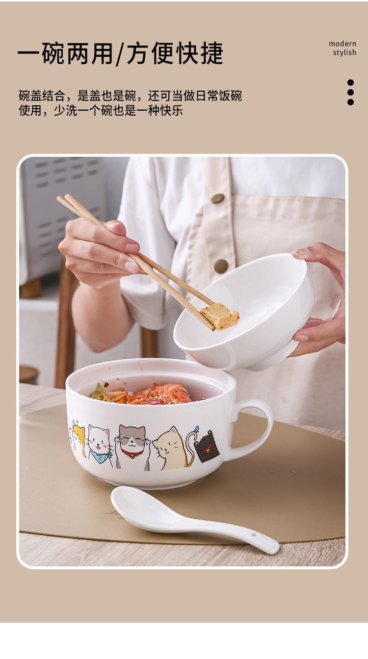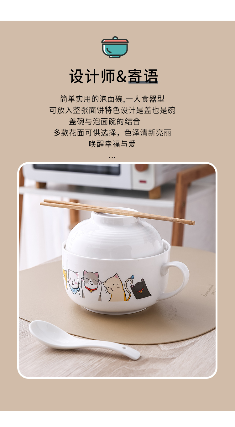 陶磁器の泡の碗は蓋の碗の学生の寮の単一の漫画のインスタントラーメンの碗の食器の食器の食器の箸のセットがあります。