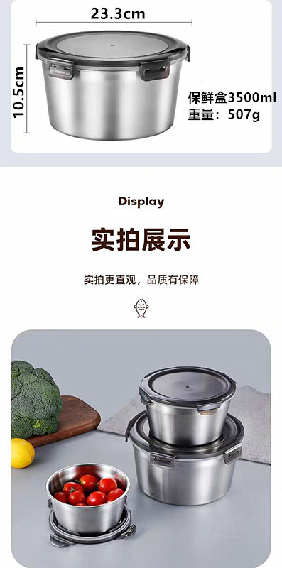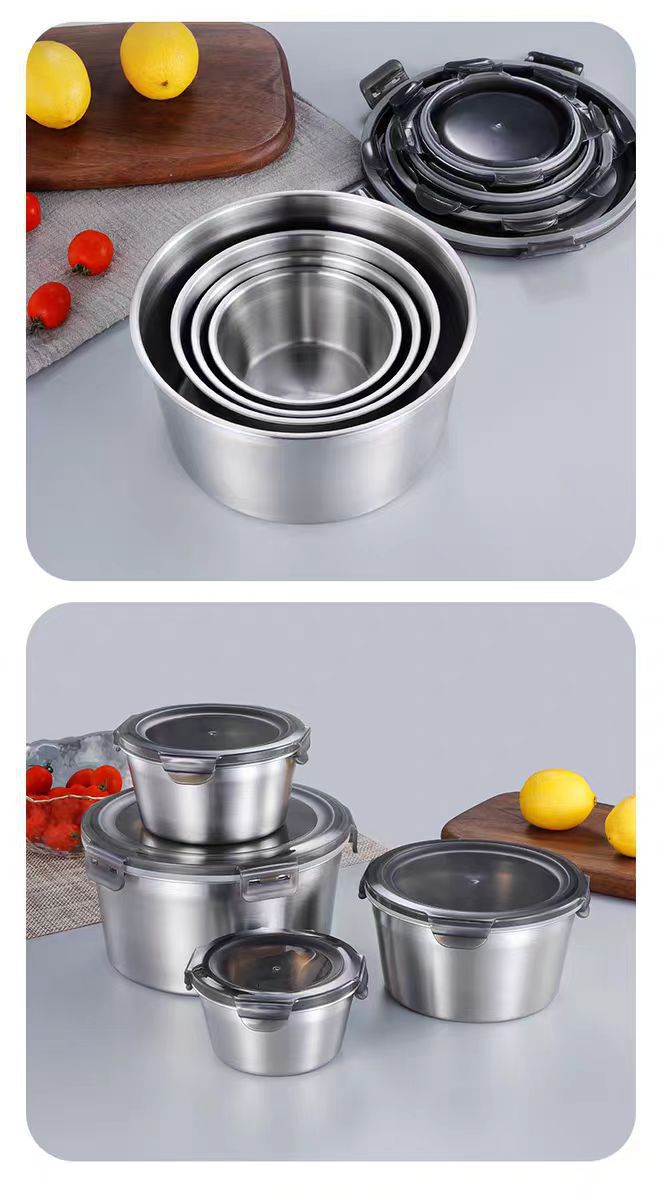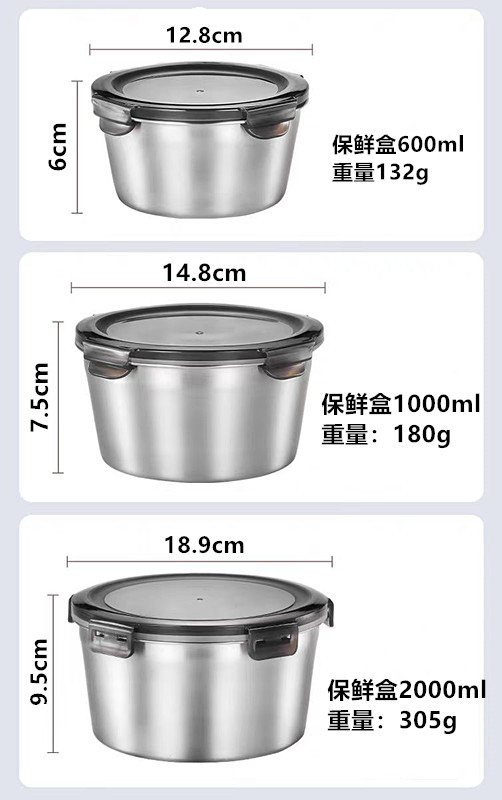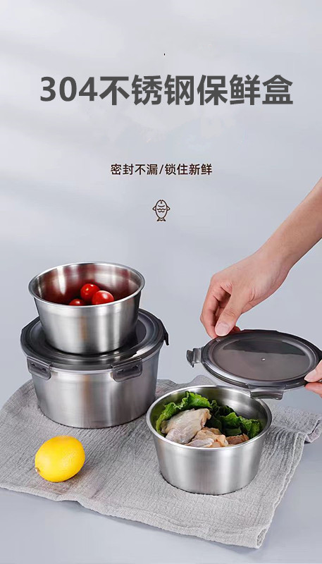 304ステンレス食品保存箱円形蓋付き食品分注箱家庭用冷蔵庫冷蔵収納密封箱