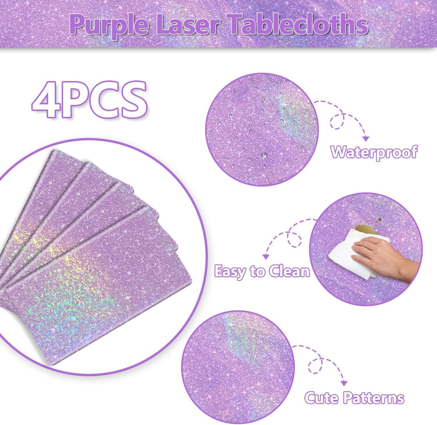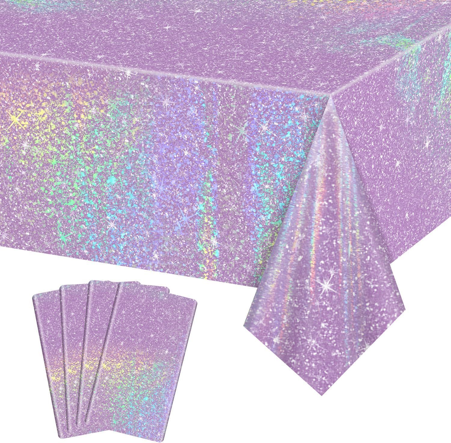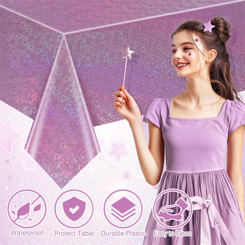 跨境铝膜紫色粉色金色激光桌布闪亮矩形紫色桌布彩虹派对装饰用品