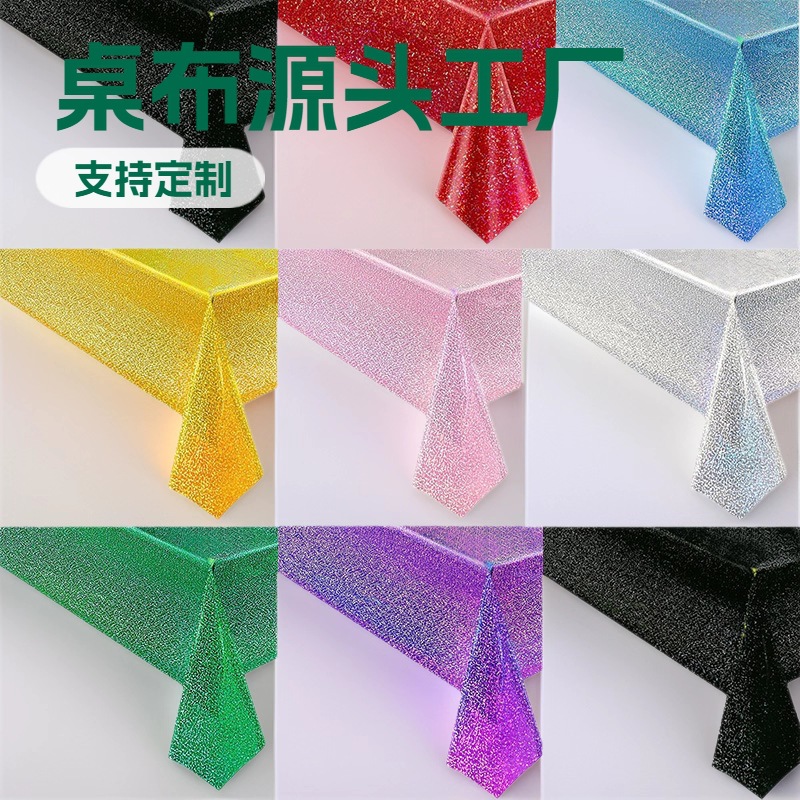 亚马逊跨境塑料镭射桌布一次性生日派对节日婚礼装饰激光桌布定制