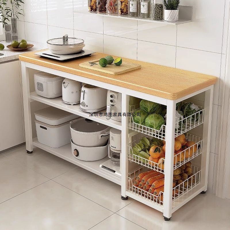 橱柜餐边柜置物架多功能菜篮子切菜工作台收纳架带门边柜多层桌子