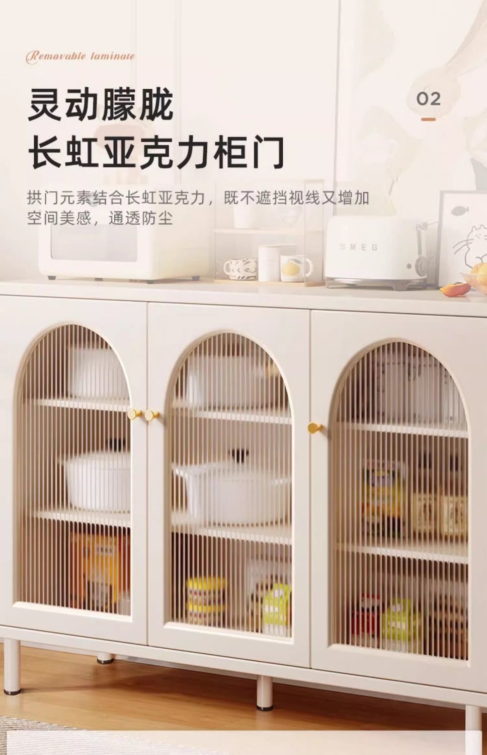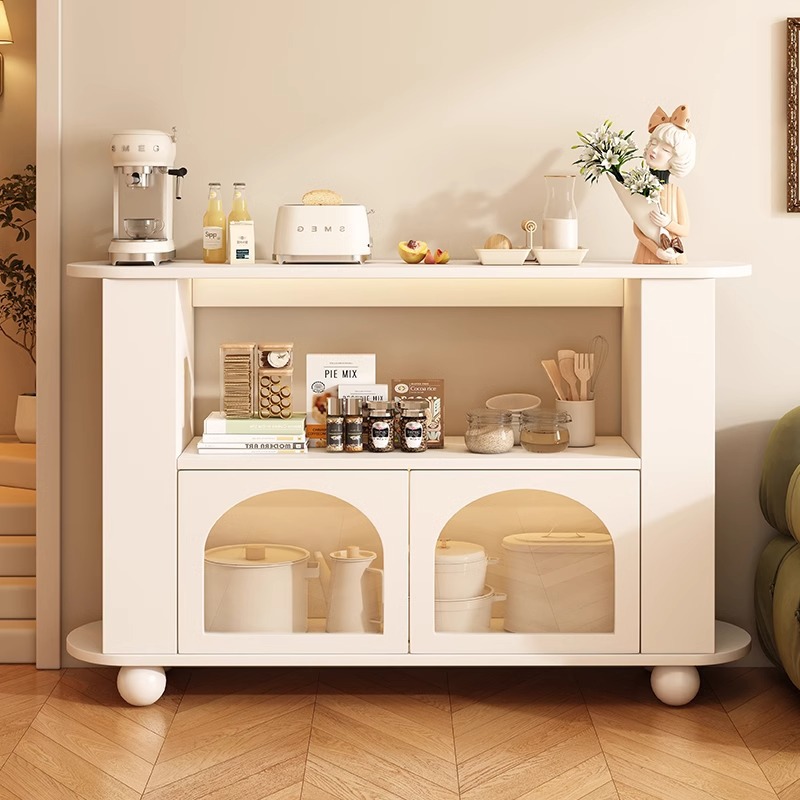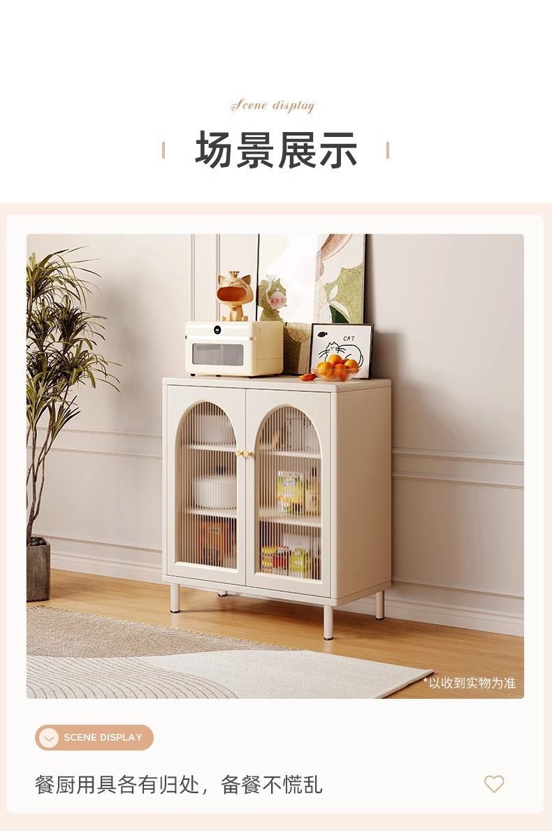 奶油风餐边柜家用厨房橱柜客厅置物柜现代简约边柜靠墙一体茶水柜