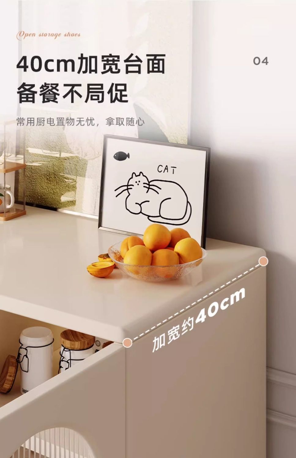 クリームスタイルのサイドボード、壁一体型収納キャビネット、家庭用サイドボード、狭いキャビネット、収納キャビネット、リビングルームの収納キャビネット、引き出しキャビネット