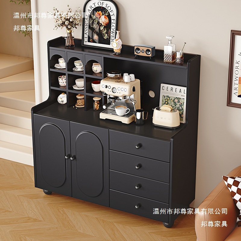 法式轻奢黑色实木餐边柜茶水柜小户型客厅斗柜沙发旁柜咖啡机柜