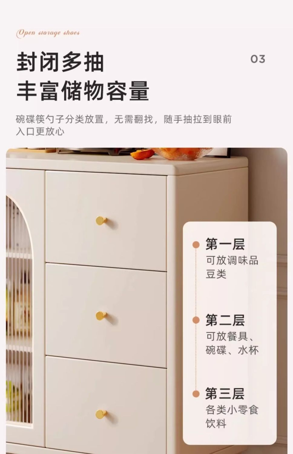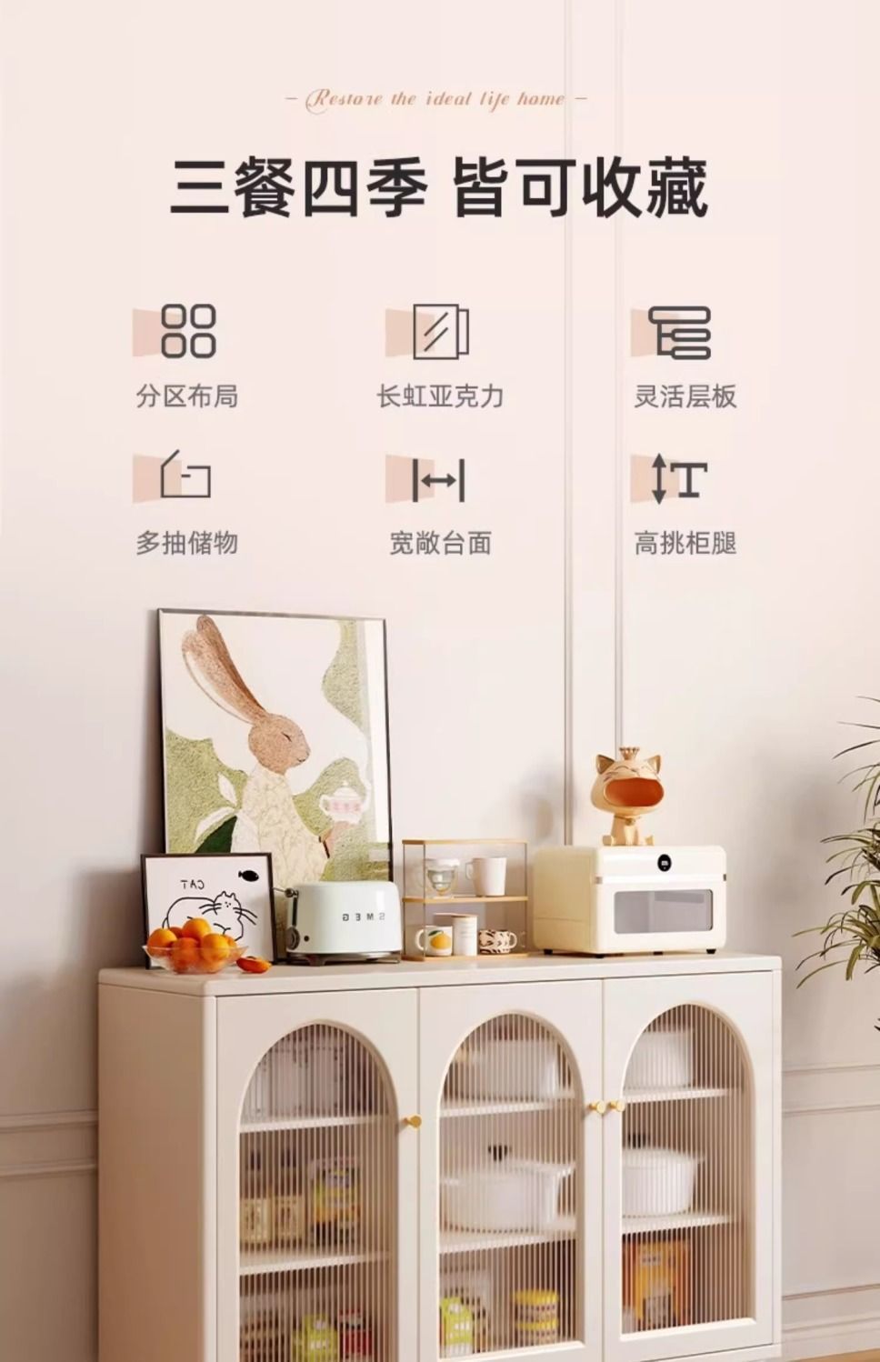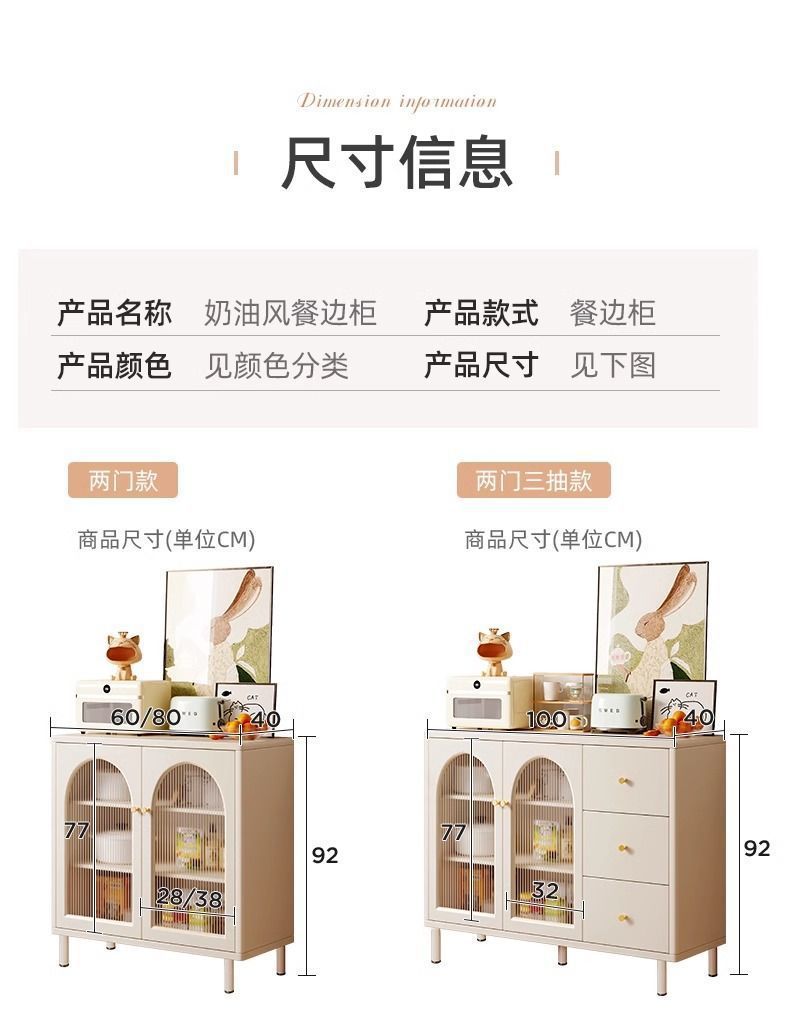 奶油风餐边柜客厅收纳置物柜厨房橱柜碗柜茶水柜子靠墙多功能斗柜