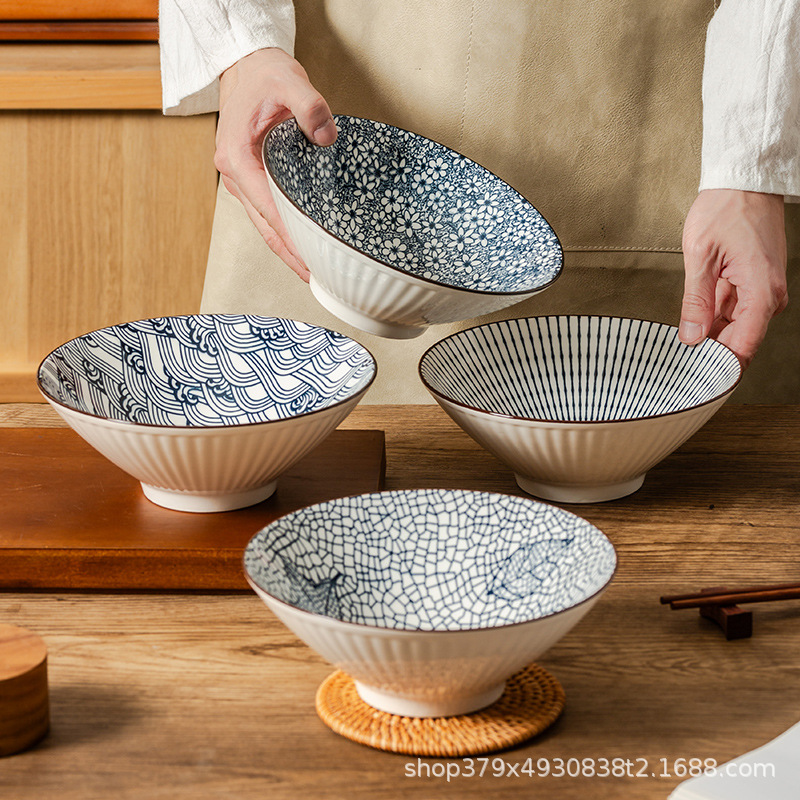 日式陶瓷8英寸拉面碗喇叭斗笠碗大号餐具浓汤碗大饭碗吃面大碗