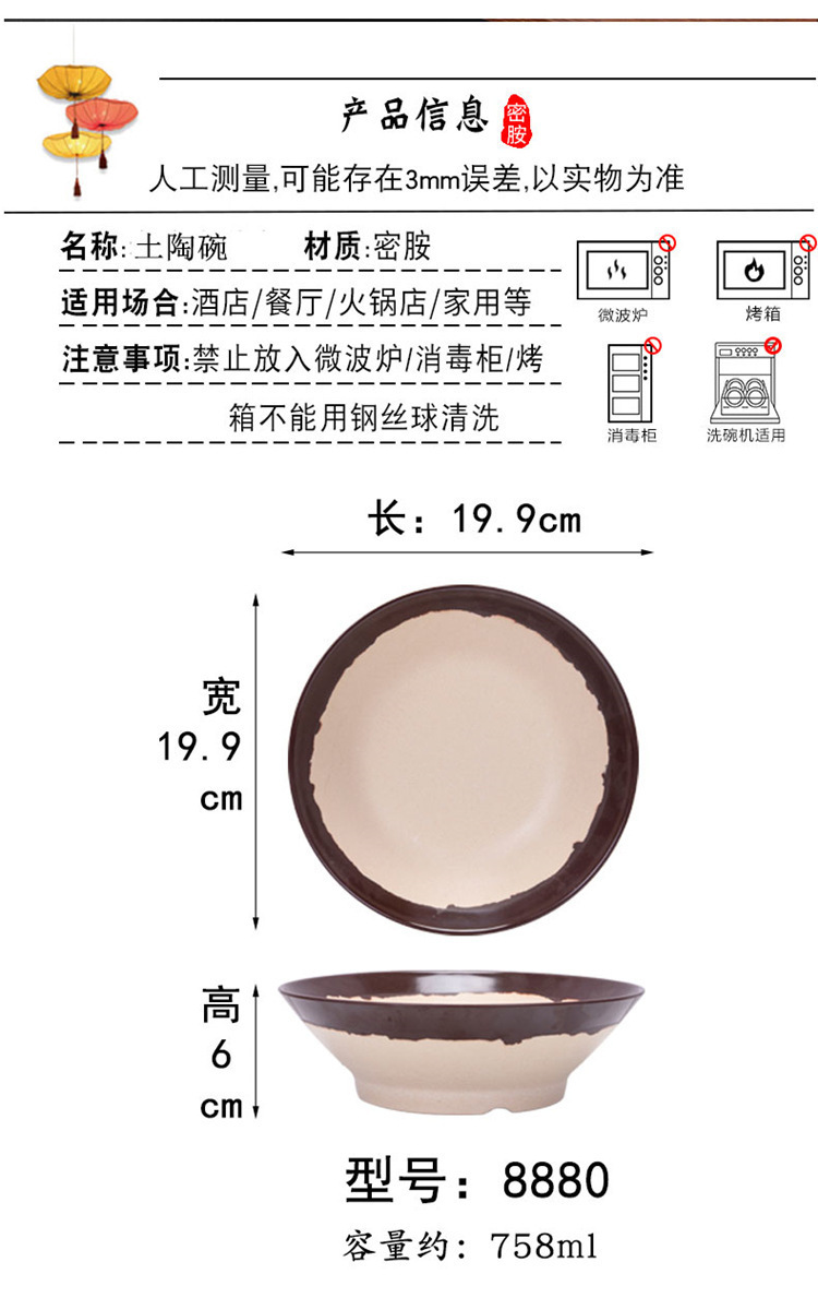 メラミンレトロ土陶シリーズ蜀教主ハロゲン鍋専用食器毛腹碗油皿碗浅口酒碗