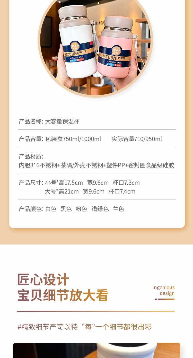 新款316不锈钢保温杯运动便携水杯户外茶水分离提绳杯新款大肚杯