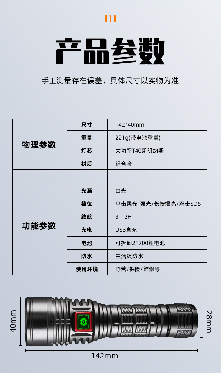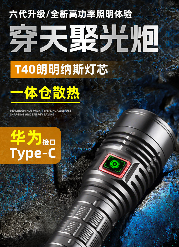 新品g40強光懐中電灯sst40電球遠射集光砲掌中宝21700一体倉懐中電灯