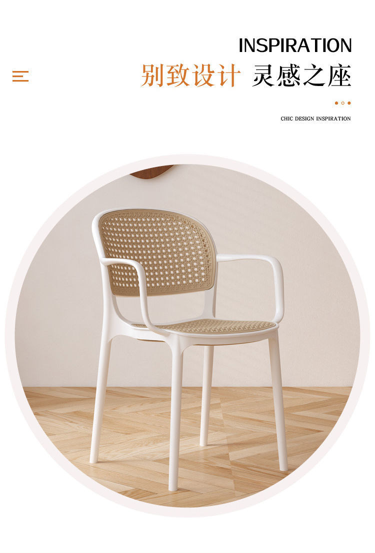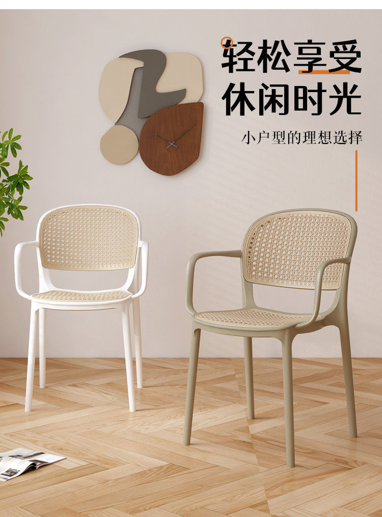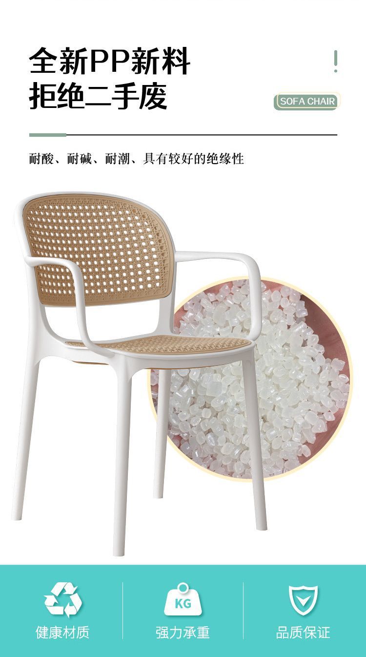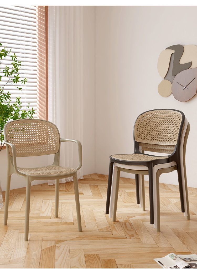 扶手塑料椅子家用餐椅靠背藤椅可叠放户外凳子阳台休闲透气藤编椅