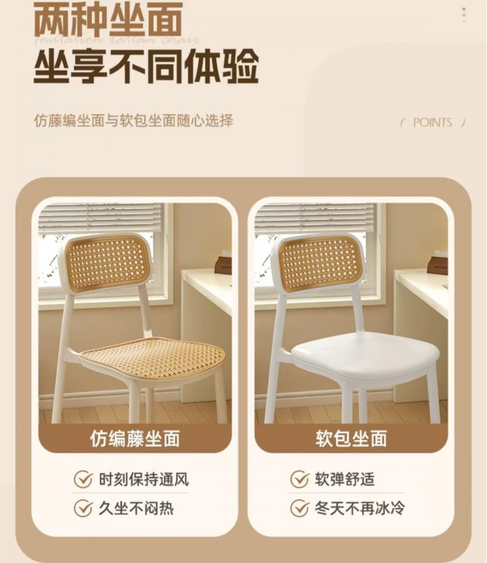 椅子背もたれ椅子家庭用椅子プラスチックスツール籐椅子編まれた籐椅子レジャーチェアオフィスダイニングチェア寮の椅子麻雀椅子
